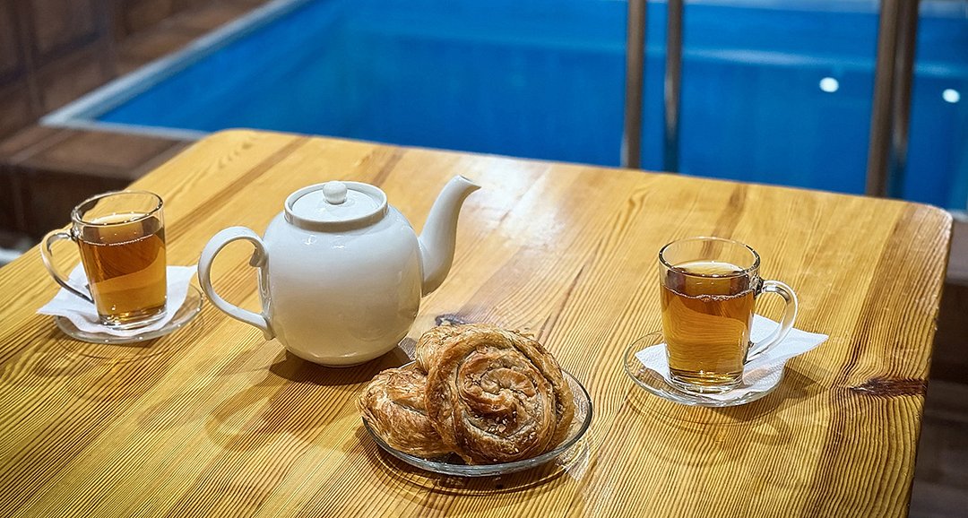 За дополнительную плату можно расслабиться в бане с бассейном и комнатой отдыха.