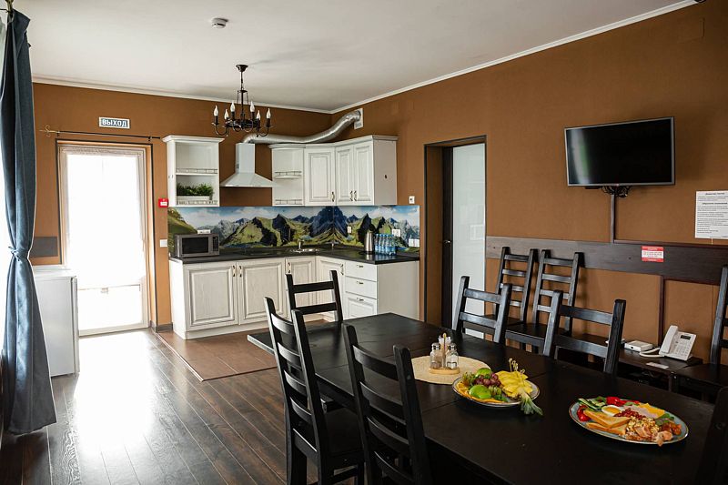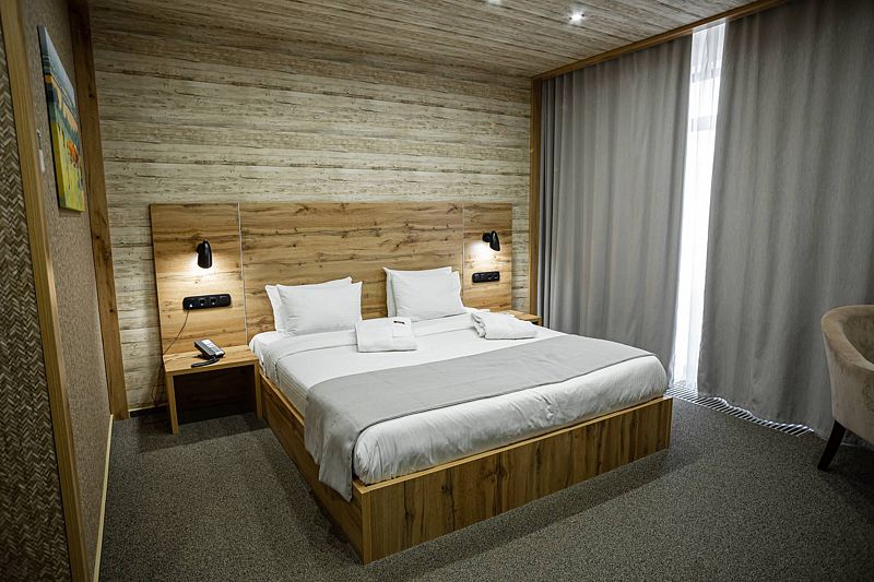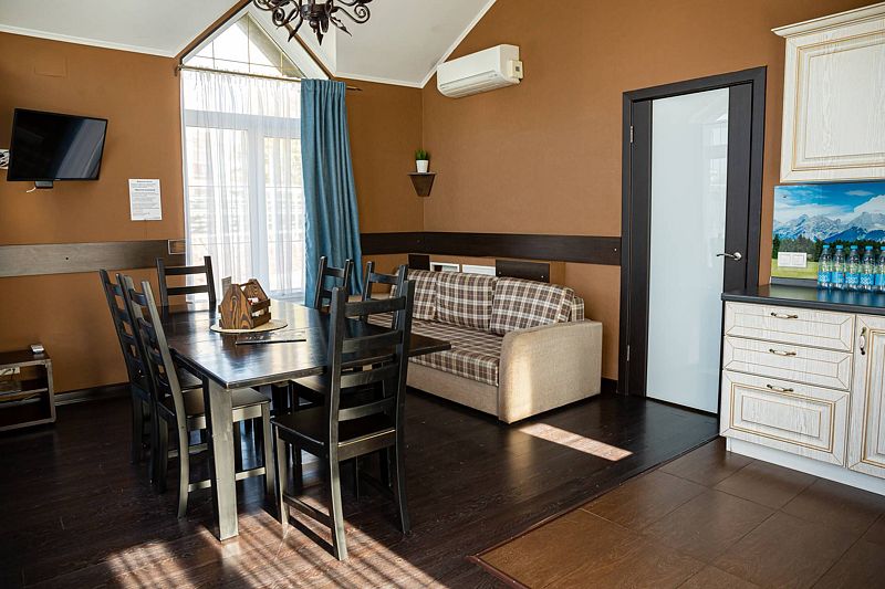Семейный отдыхДостоинстваПонравилось много всего, но почти все это с пометками. Жили в двух этажном доме, дом большой и удобный. Но не особо чистый. Диван с разводами, мебель потертая, матрасы и подушки не очень удобные. Из хорошего убирались каждый день, полотенца меняли каждый день и воду приносили каждый день. Но. Уборка такая поверхностная. Аква зона хорошая, с детьми комфортно. Единственное это фены, их много и через один перегреваются и выключаются или дуют холодным воздухом. Ресторан Вершина хороший, вкусное меню. Завтраки тоже неплохие, есть из чего выбрать. Единственное что не понравилось это то что нет детской площадки на территории. Вернее она есть, но там где аквапарк. Мы заехали 4 сентября, аквапарк закрыт и площадка тоже. Детям на территории скучно . Ну и территория очень небольшая, заняться не чем