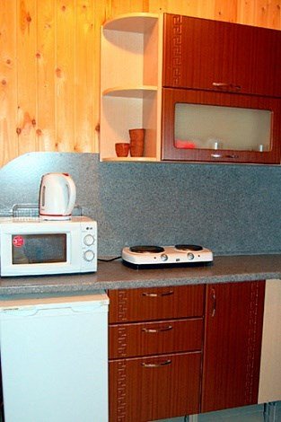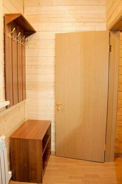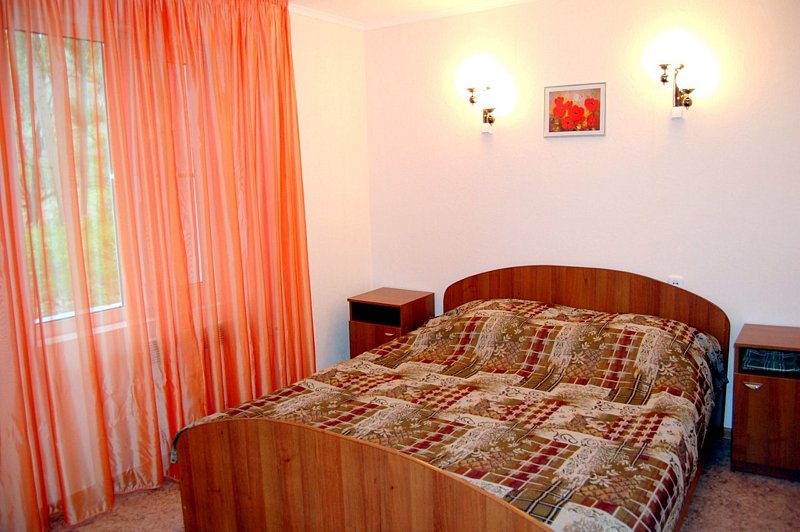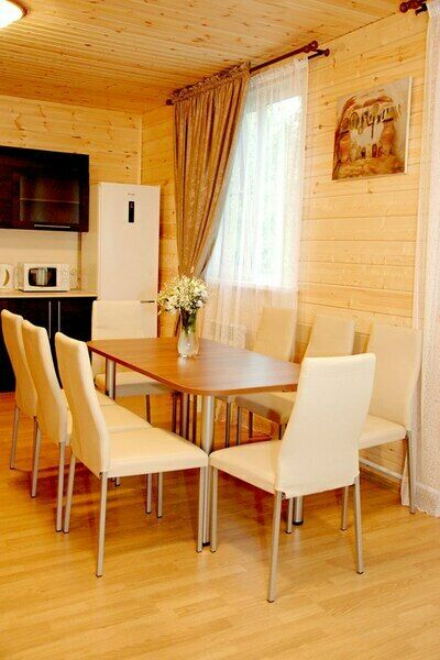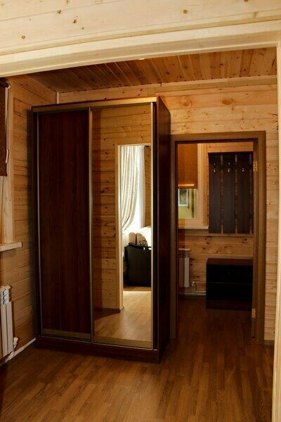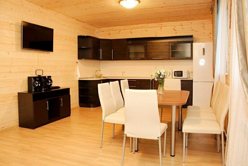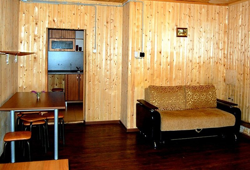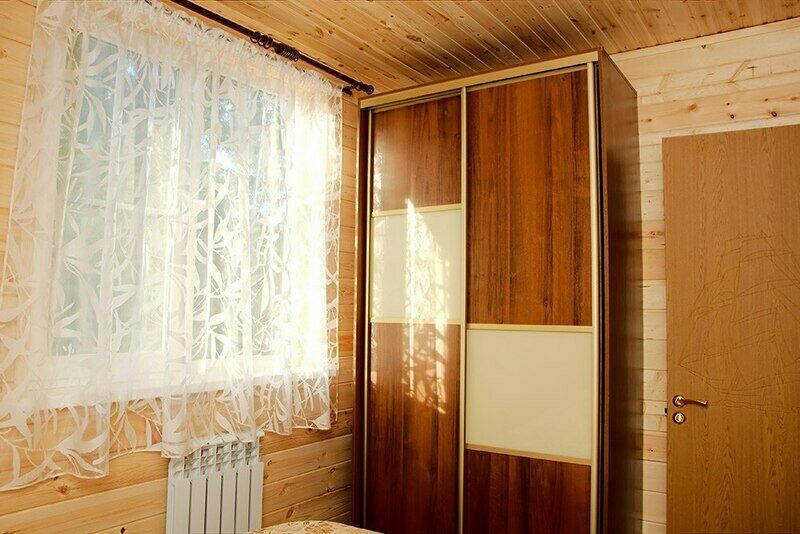 В коттедже: 4 спальни с двуспальными кроватями, просторная гостиная с раскладным диваном, кухня с кухонным гарнитуром и большим обеденным столом, 2 санузла, телевизор, DVD-проигрыватель, музыкальный центр, электрическая плита, электрический чайник, холодильник, микроволновая печь, шкафы-купе в спальнях, шкаф-купе, вешалка с крючками и обувная полка в прихожей, комплект посуды на десять человек, кухонные принадлежности (кастрюли, сковорода, разделочная доска и т.д.).