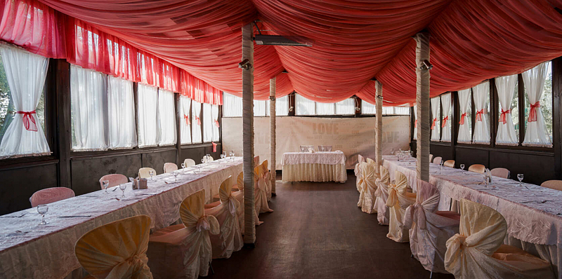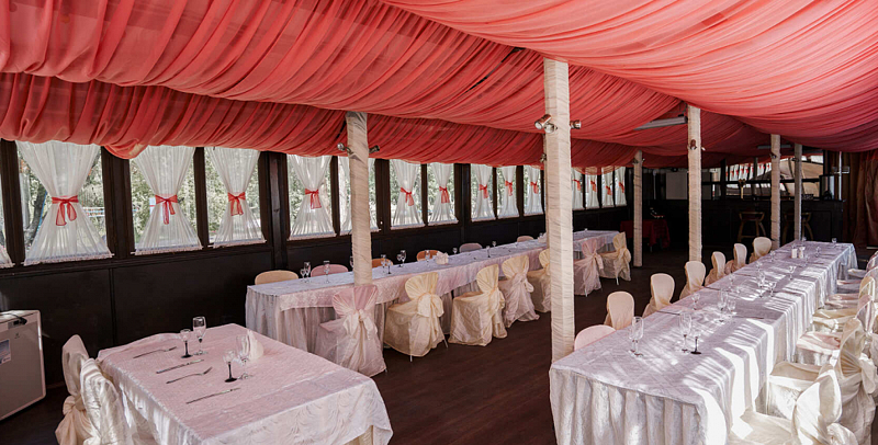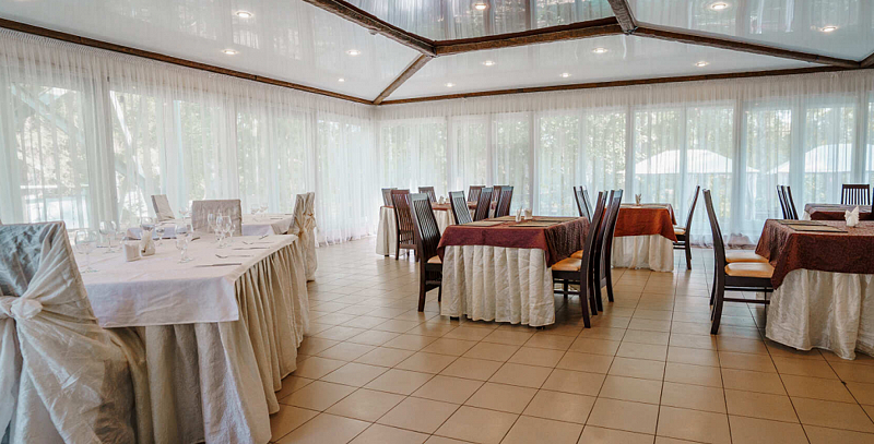 Банкетный зал включает зал и крытую террасу.