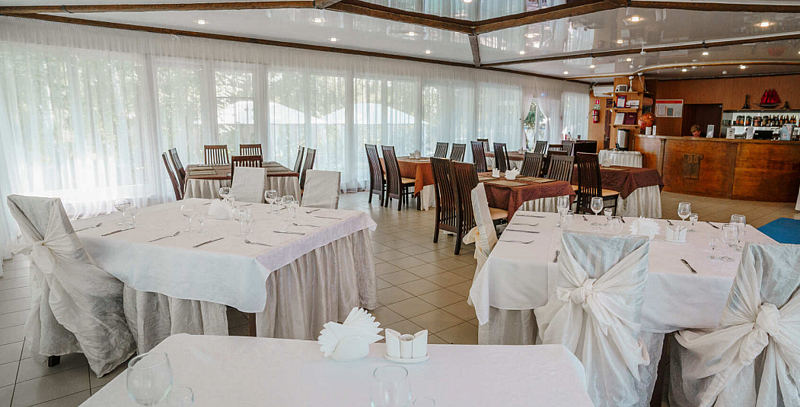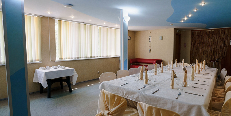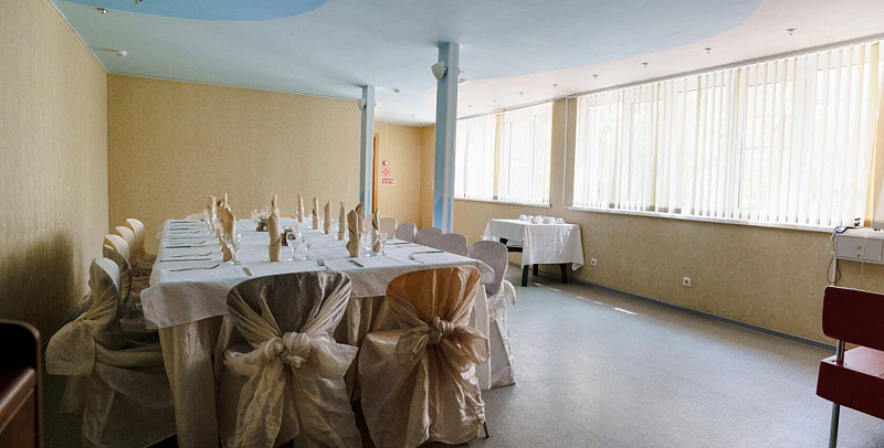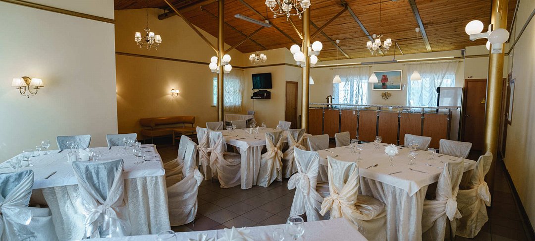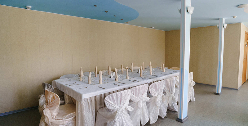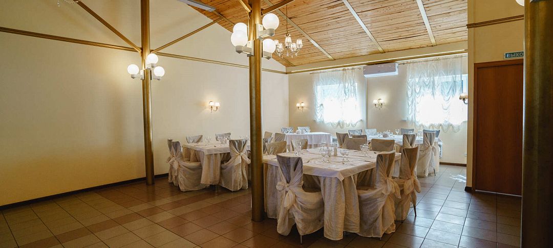 Светлый, праздничный и просторный банкетный зал, в котором Вы сможете отпраздновать любое торжество: свадьбу, корпоратив, юбилей, день рождения, выпускной.