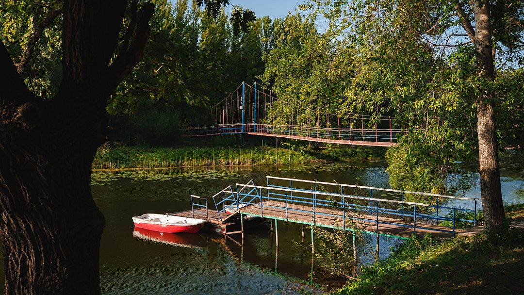 База занимает 10 гектаров, в центре расположено живописное озеро с кувшинками и утками. Зимой здесь можно покататься на коньках и тюбингах, а летом — арендовать лодки и катамараны или отправиться на рыбалку.