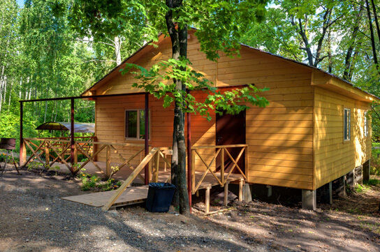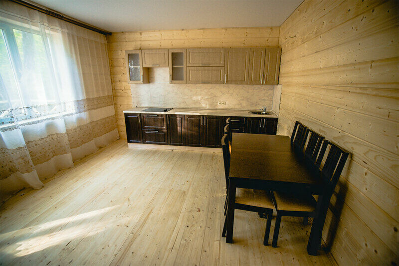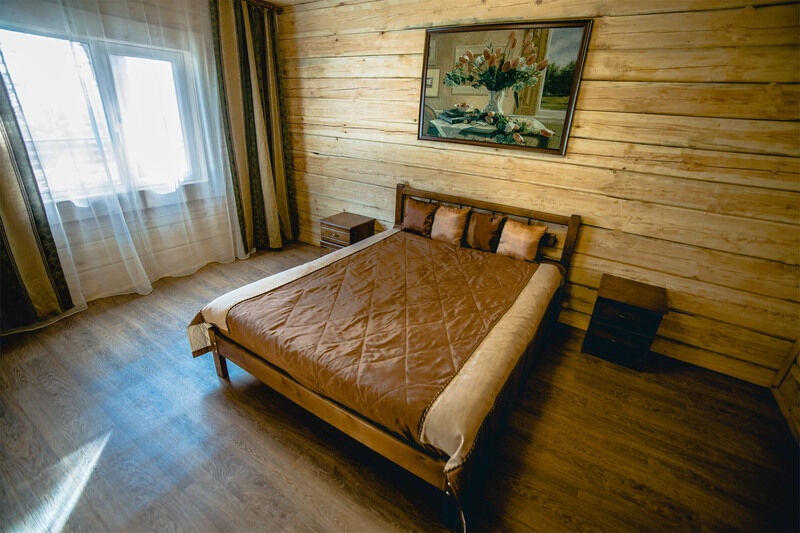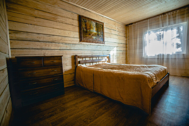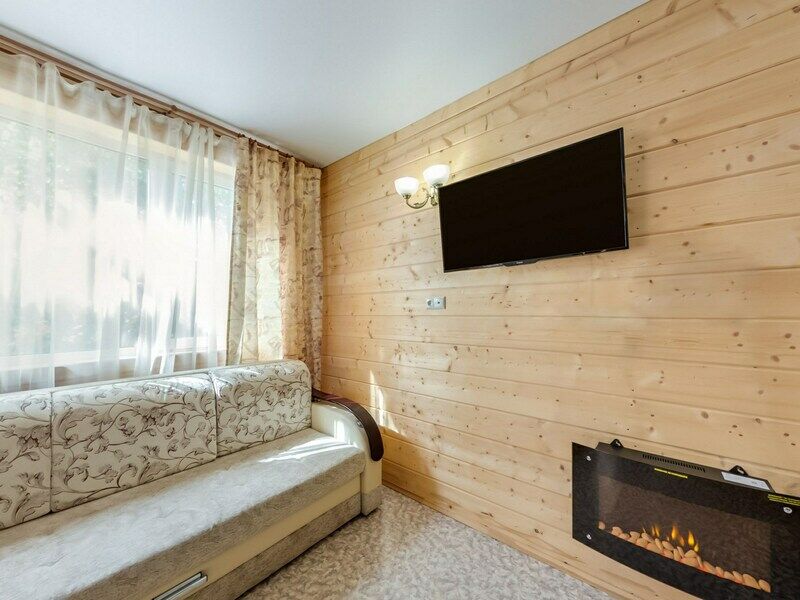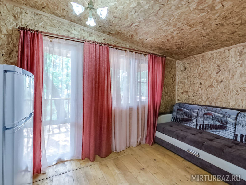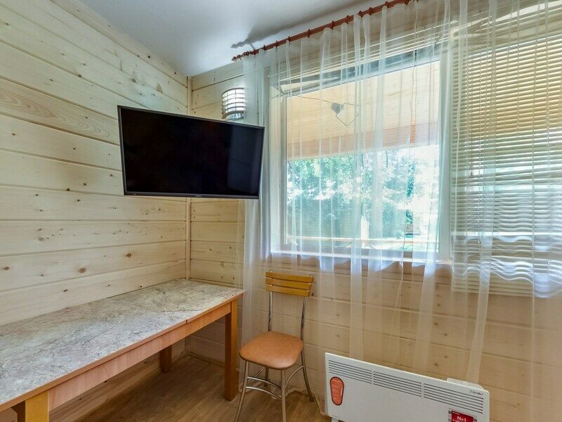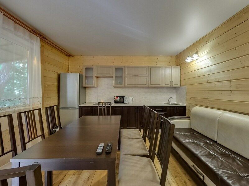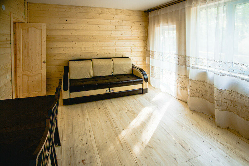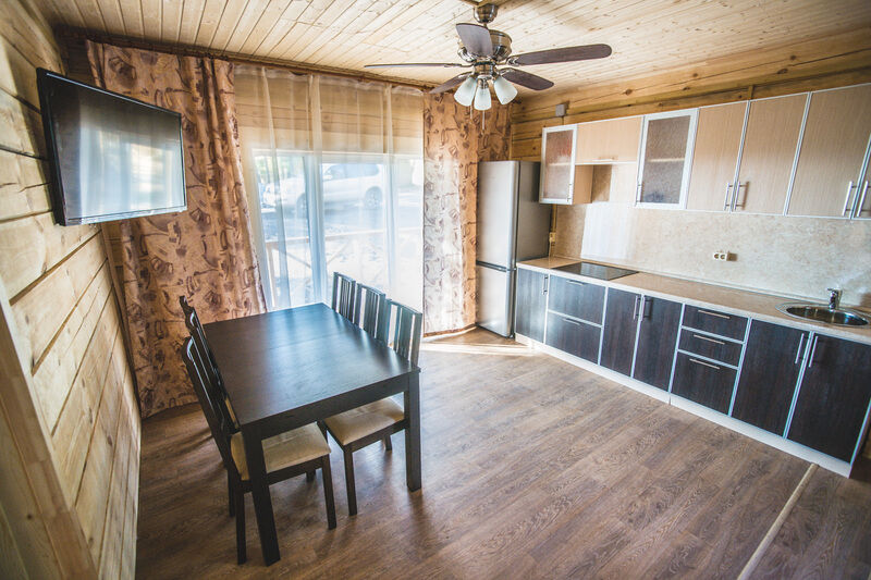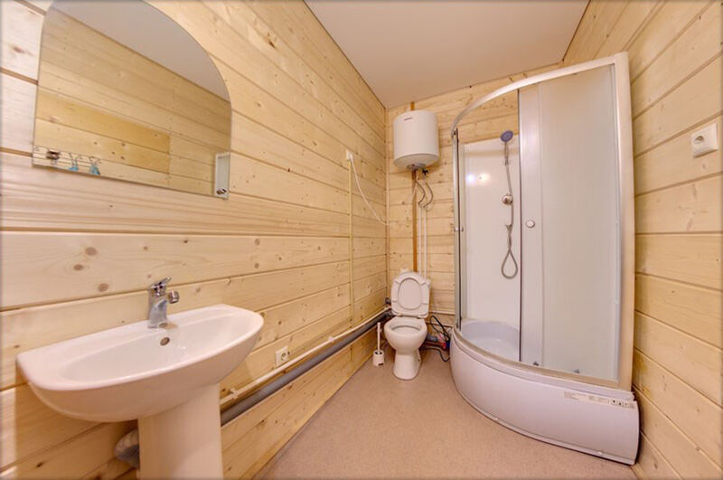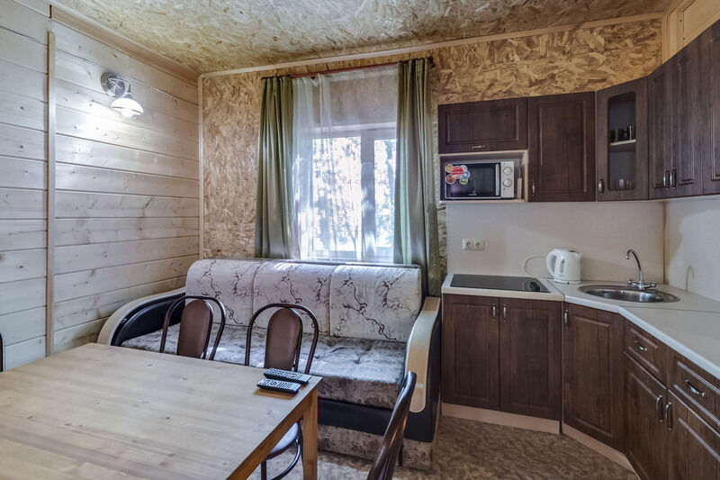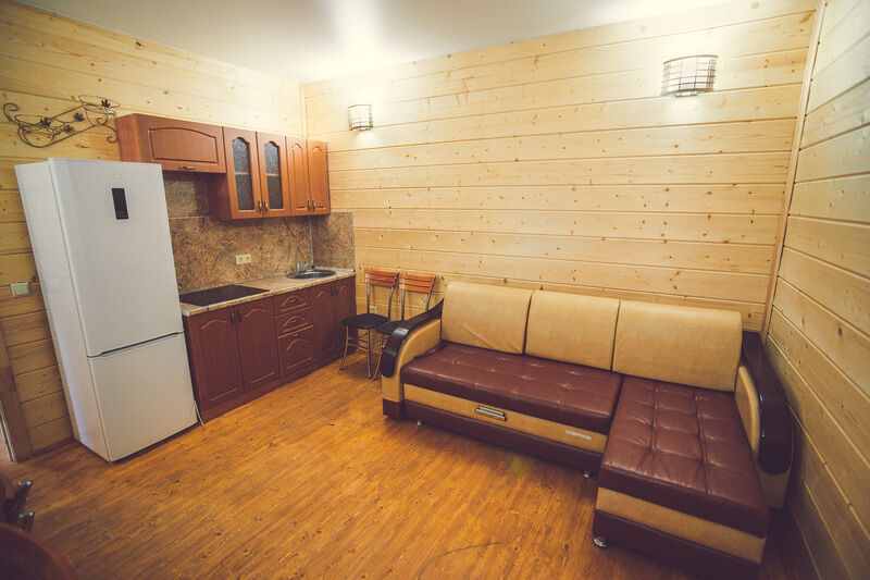 Семейный отдыхДостоинстваУ нас в номере была двуспальная кровать, а на кухне раскладывающийся диван. В комнатах очень тепло, при необходимости можно включить обогреватель, имеется бойлер с горячей водой. Возле домиков стоят мангалы, по стилю гостевые срубы напоминают небольшие охотничьи домики.