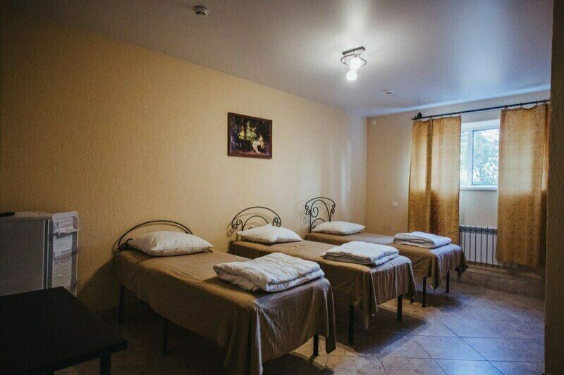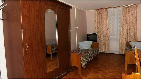 В каждом номере: 2, 3 или 4 кровати с ортопедическими матрасами, чайник, холодильник, телевизор, шкаф, стол, стулья.