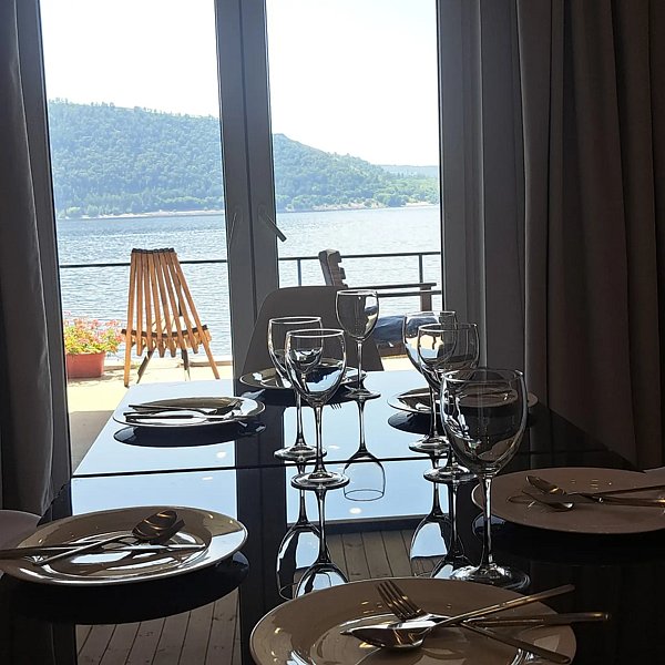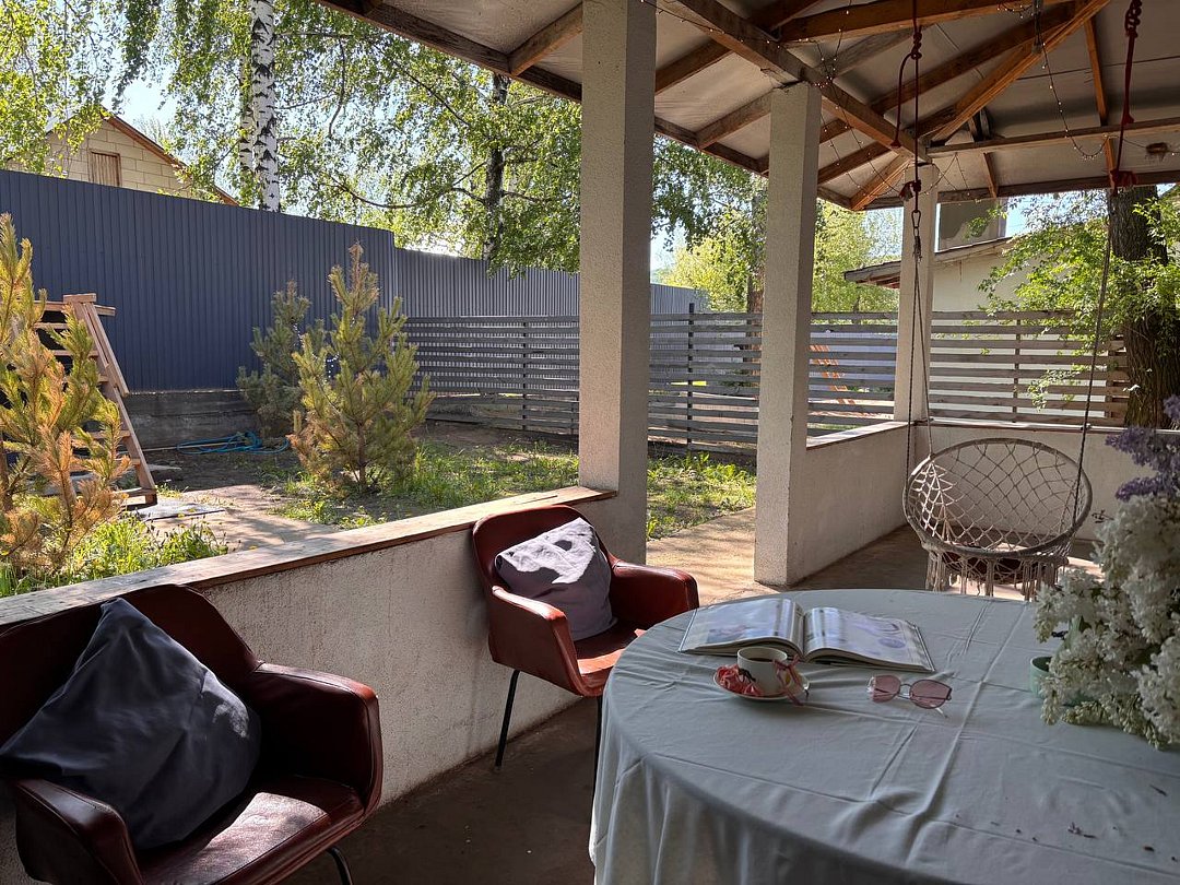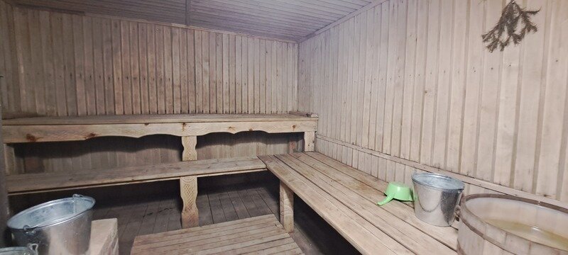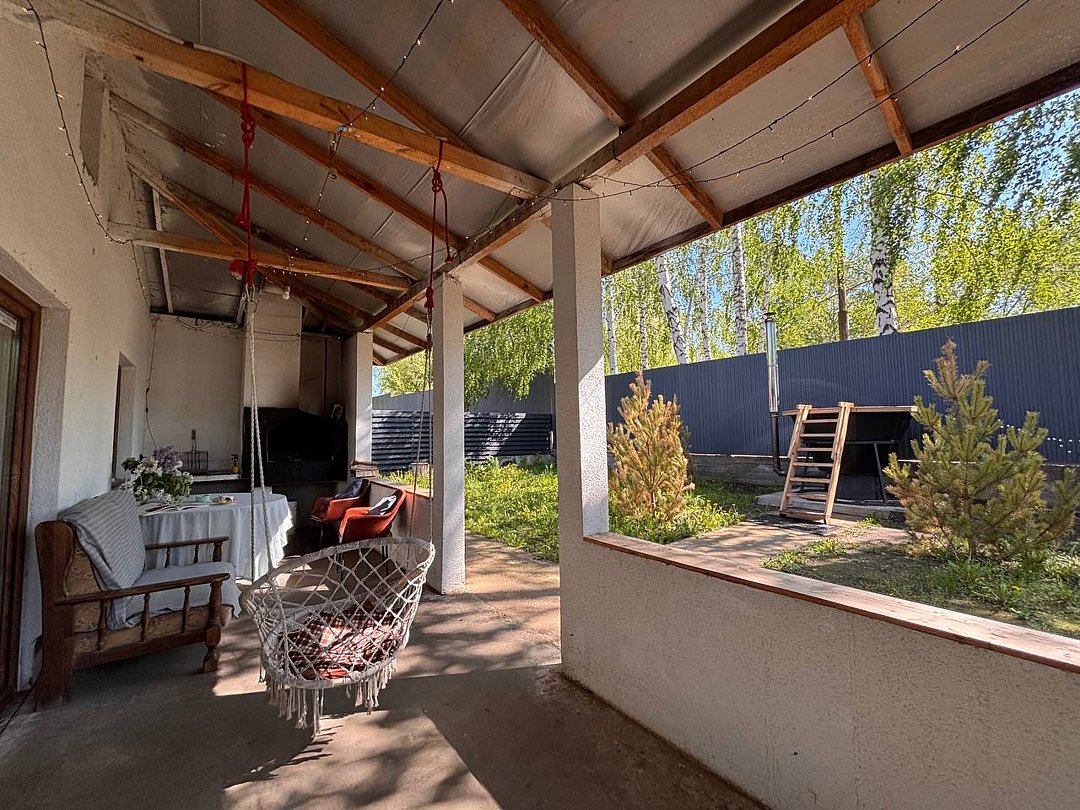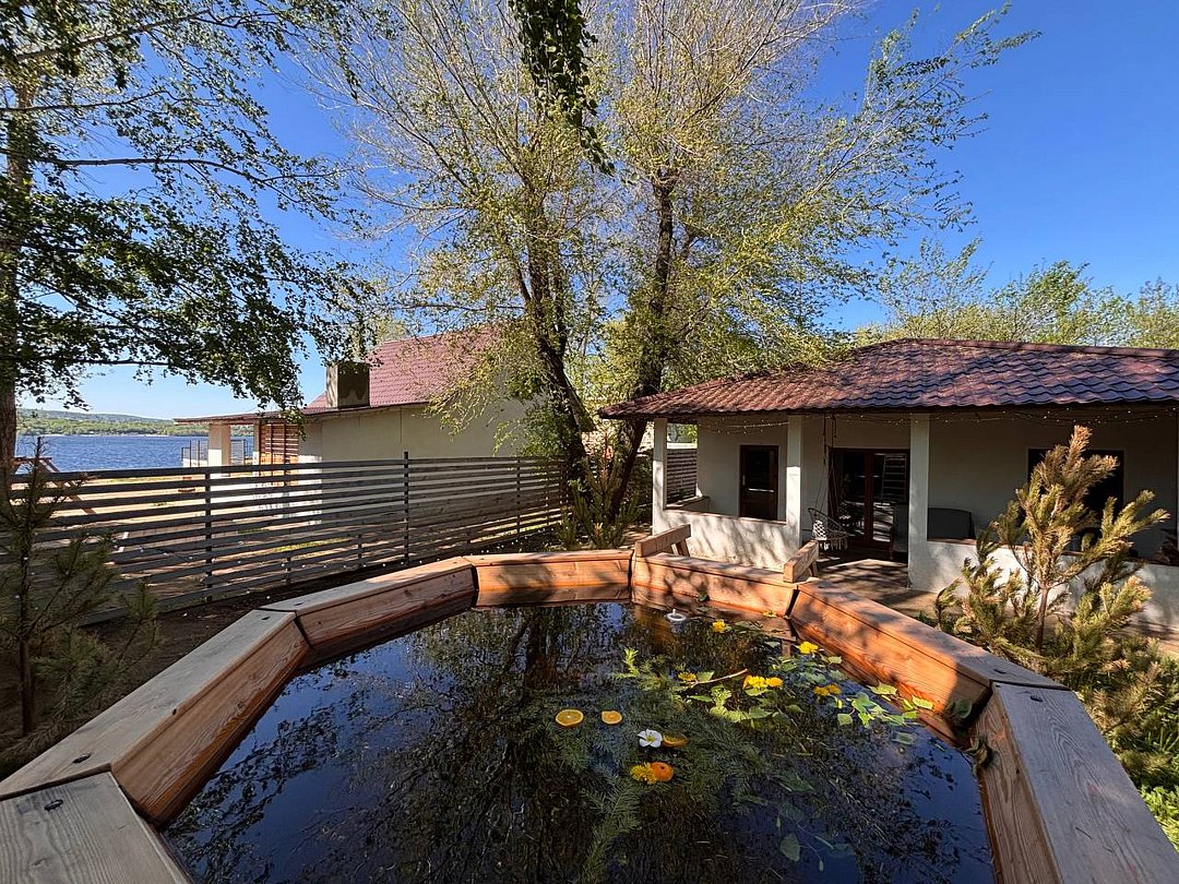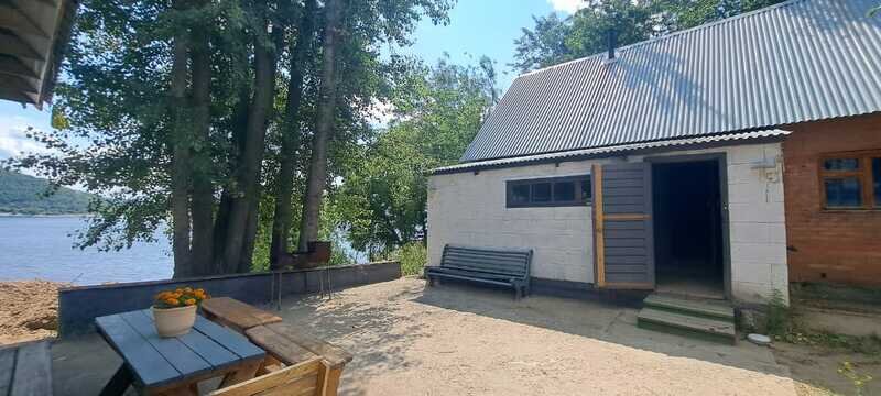 Банный комплекс с сауной и бассейном. Витражи на Волгу из столовой. Веранда, закрытая от дождя и жары, с мангалом, решеткой. Есть казан за дополнительную плату.