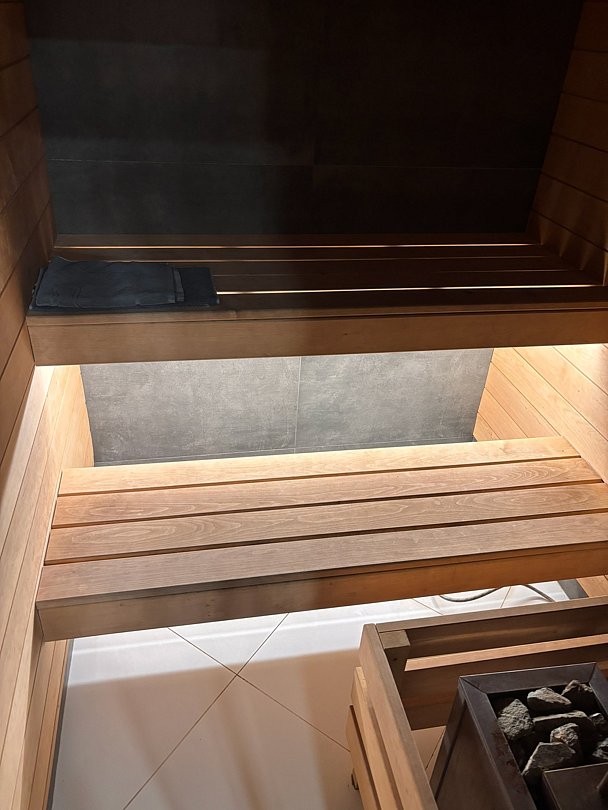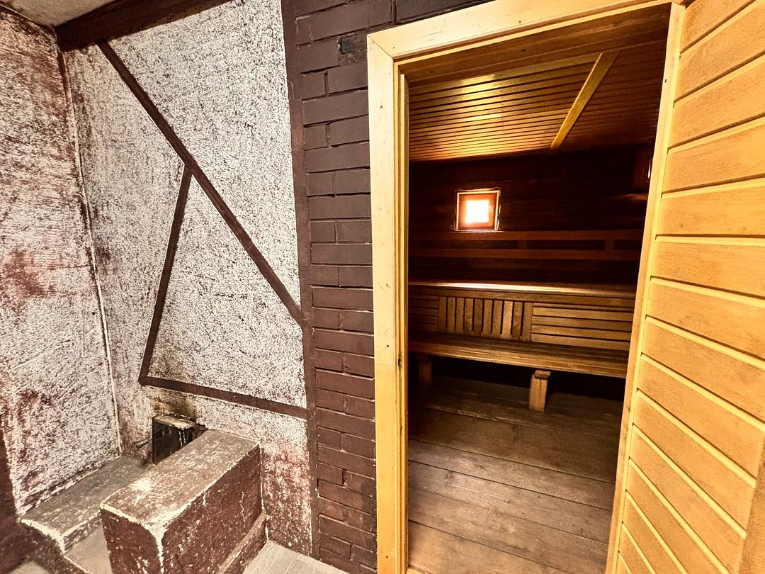 Сауна с бассейном и комнатой отдыха.