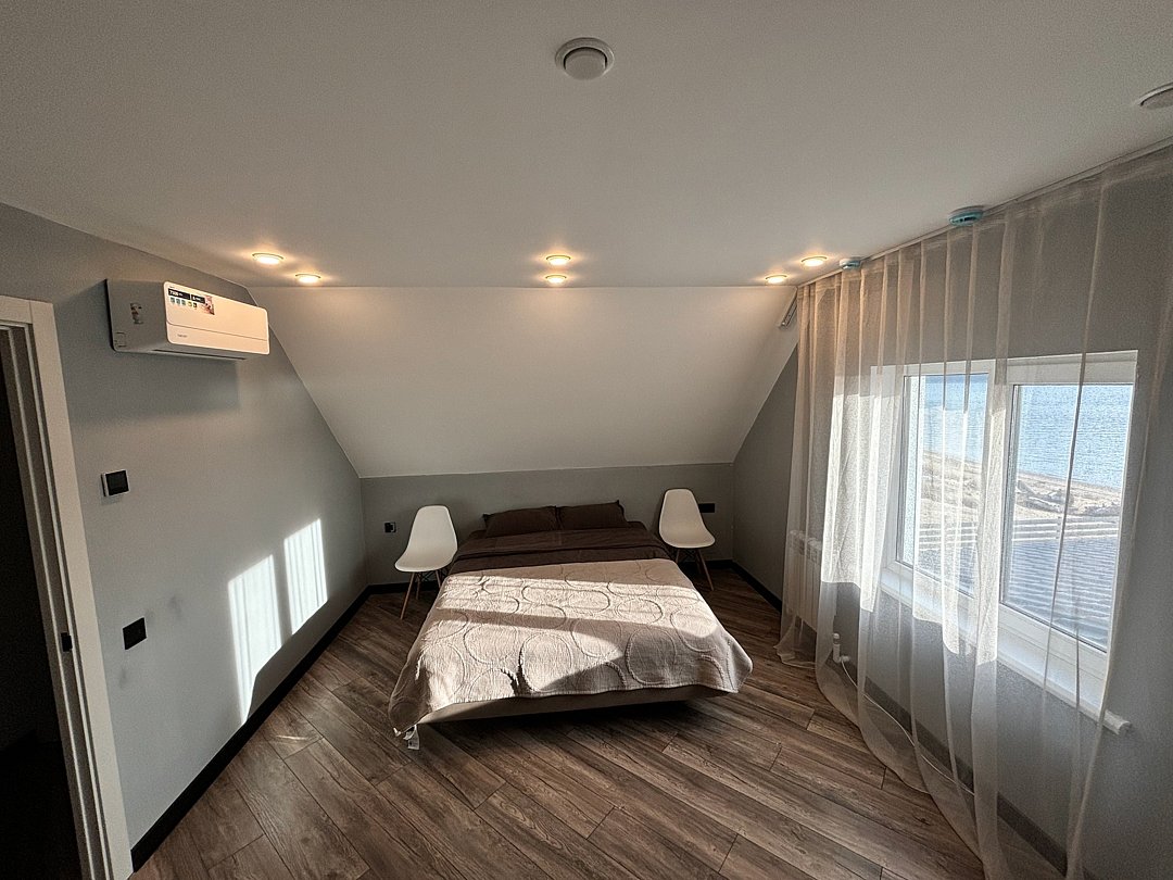 В доме: 4 спальни, в каждой спальне двуспальная кровать. Гостиная с ТВ, колонка Алиса. Две кухни, 2 санузла. Вся необходимая красивая посуда.