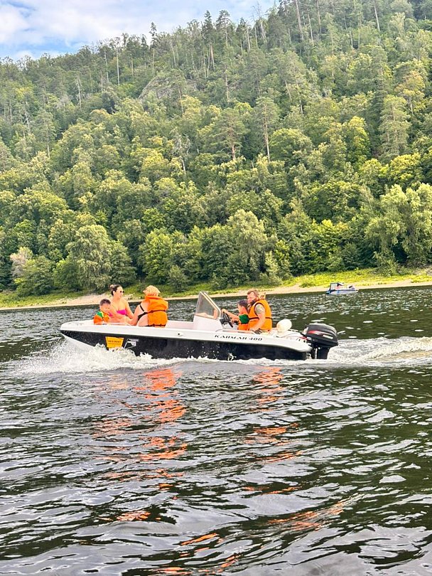 В летнее время отдыхающие могут прекрасно отдохнуть и провести досуг, воспользовавшись такими услугами базы: волейбольная площадка, теннисный корт, футбольное поле, катание на гидроциклах, бильярд, настольный теннис, подводная охота, дискотека. Любители тишины и покоя, могут прогуляться по лесу, сыграть партию в домино или шахматы, попариться в финской сауне или бане. На турбазе имеется ухоженный и чистый пляж, где можно поплавать и получить красивый загар, охраняемая автостоянка, зал с игровыми автоматами, массажный салон, шашлычная площадка и игровая зона для детей.
