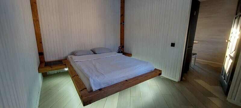 Четырехместный с баней. В доме 1 спальня и гостиная, имеется кухня.
