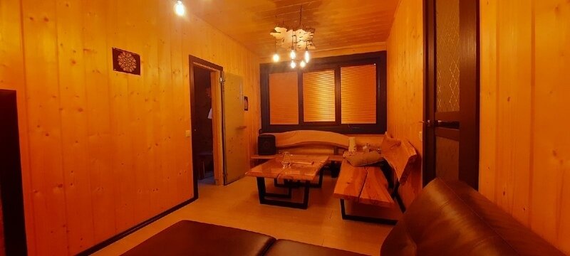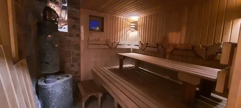 Также есть возможность насладиться неподражаемой атмосферой русской бани — пар создается на основе дубовых дров с использованием закрытой каменки. После приятных процедур предлагается отдохнуть и насладиться чашечкой ароматного чая.