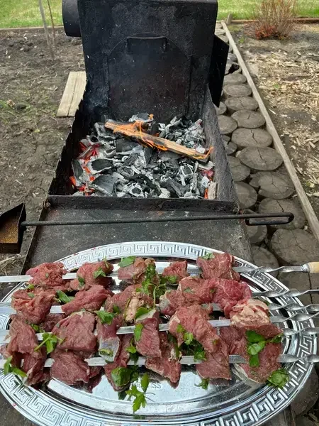 Гости могут воспользоваться печью-мангалом, с удобной решеткой для гриля, а также качественными шампурами и казаном, что позволит воплотив свои замыслы вкусом и ароматами великолепных блюд, которые Вы сами приготовите на специализированном оборудовании.