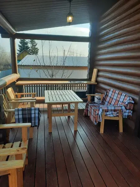 Для комфорта гостей имеется просторная открытая веранда, оборудованная удобной мебелью и функциональной кухней.