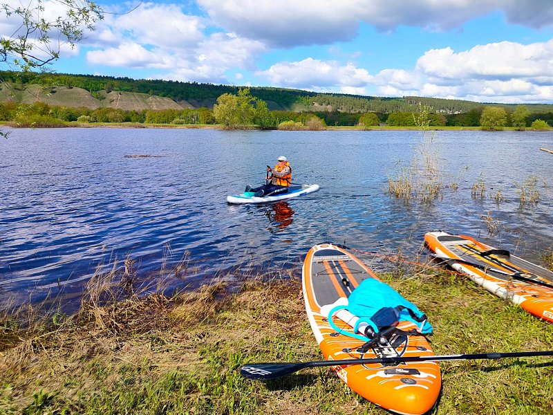Надувная доска для пользователей весом более 80 кг. Подходит для прогулок и продолжительных сплавов.