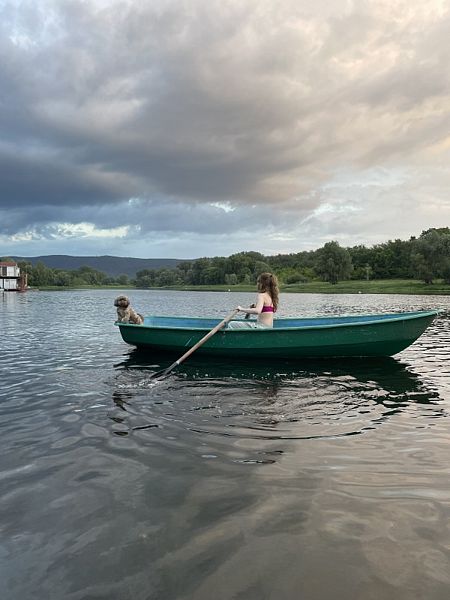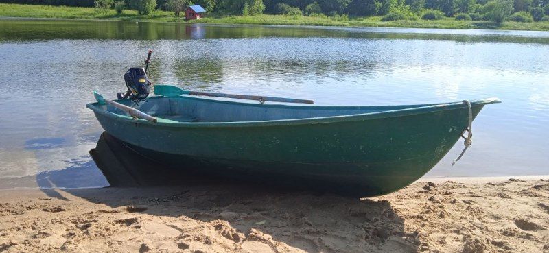 Весельная лодка вместит до 5-три человек и собаку.