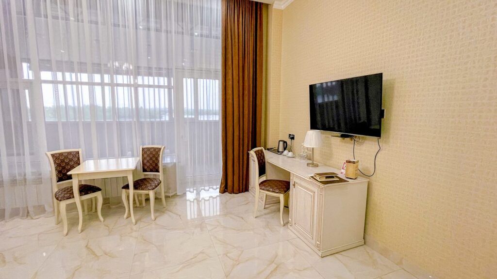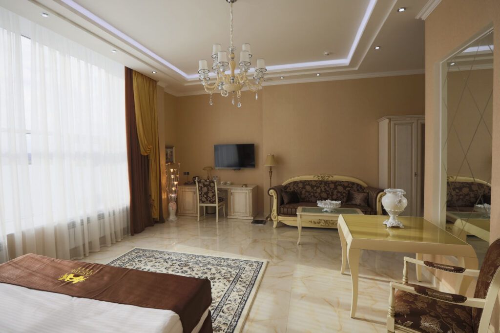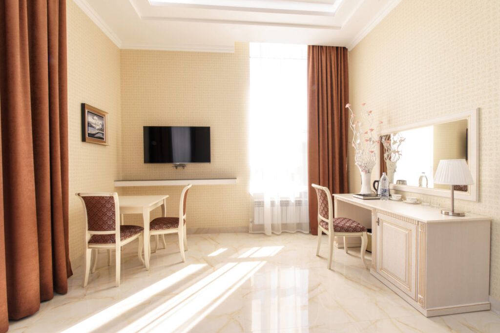 Чтобы вы могли отдохнуть после долгого дня, в номере есть телевизор. Оснащение зависит от выбранной категории номера.