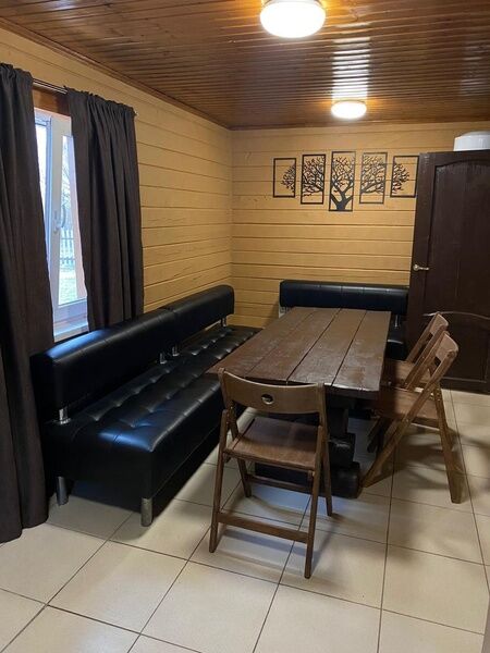 На большом участке огороженном забором размещены три срубовых дома с разной вместимостью, от 2 до 25 человек, у каждого дома имеется своя огороженная территория с беседкой и мангальной зоной. Дома оборудованы всей необходимой современной мебелью и техникой, есть караоке. В домах отличные бани на дровах.