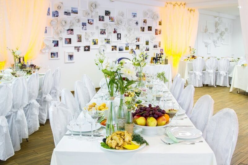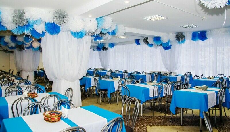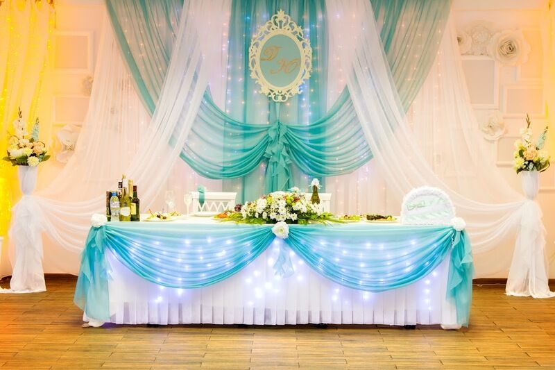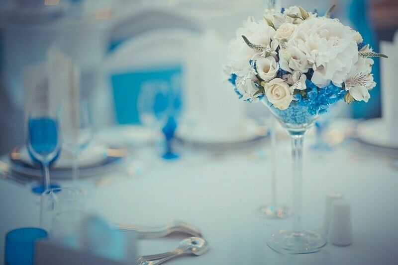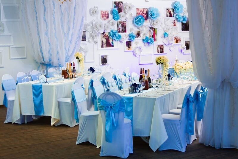 Сочетание голубого и белого в палитре вызывает ощущение прозрачности, чистоты и невесомости. Зал в морском стиле станет превосходной площадкой для проведения торжества от 30 до 100 персон.
