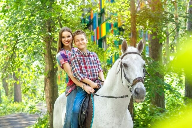 Семейный отдыхДостоинстваМы снимали для отдыха номер стандарт, он небольшой и уютный, есть телевизор, электрический чайник, холодильник. В коридоре можно взять питьевую воду в бутылках. Территория благоустроена, работает прокат спортивного инвентаря, можно покататься на катке, а зимой на тюбинге с горках, на конюшне живут лошади.