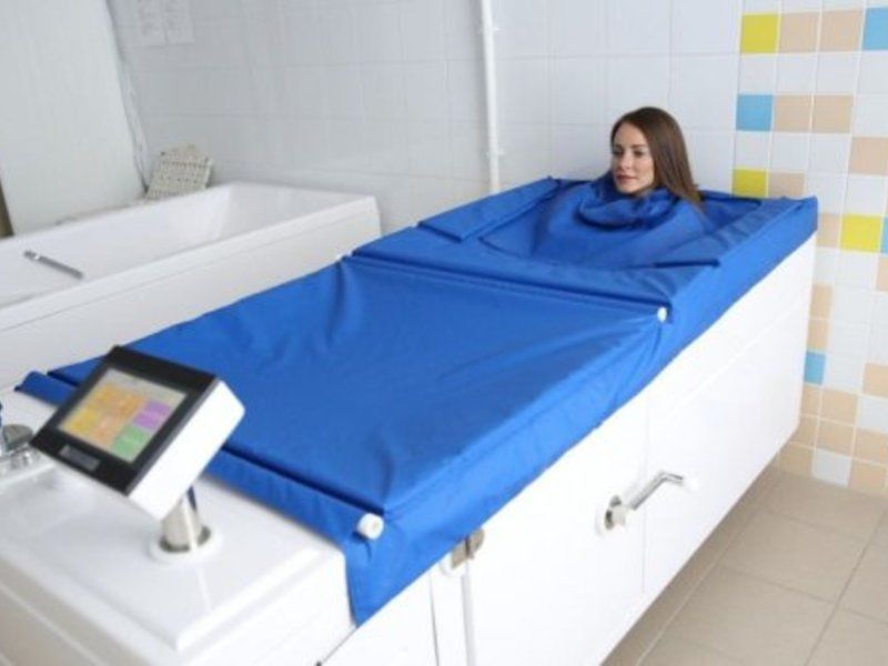 Лечебный эффект сухой углекислой ванны основан на положительном воздействии углекислого газа на организм. Но здесь, в отличие от углекислотной ванны, газ воздействует на пациента непосредственно, исключая гидростатическое давление и температурное воздействие воды. углекислый газ, проникая через неповрежденную кожу, вызывает расширение сосудов и ускорение тока крови за счет его непосредственного влияния на капилляры и мелкие сосуды. Показания к применению: