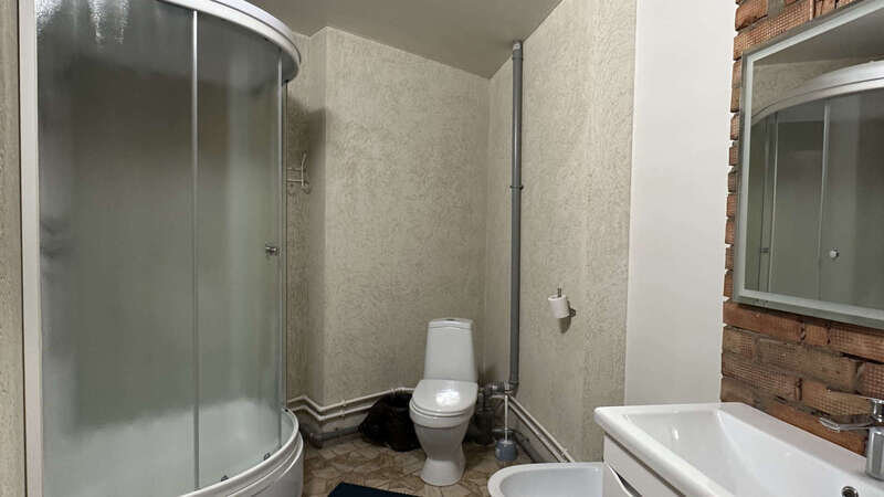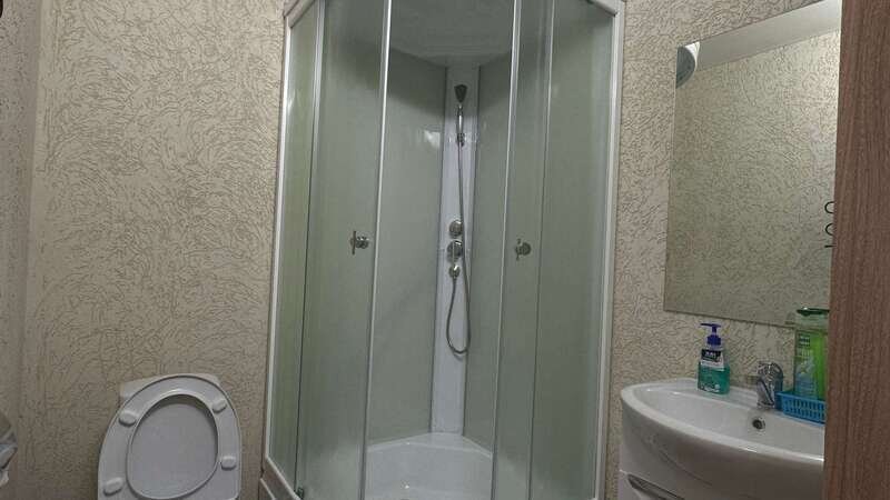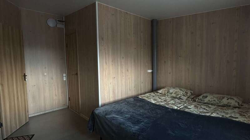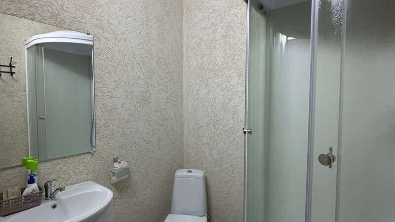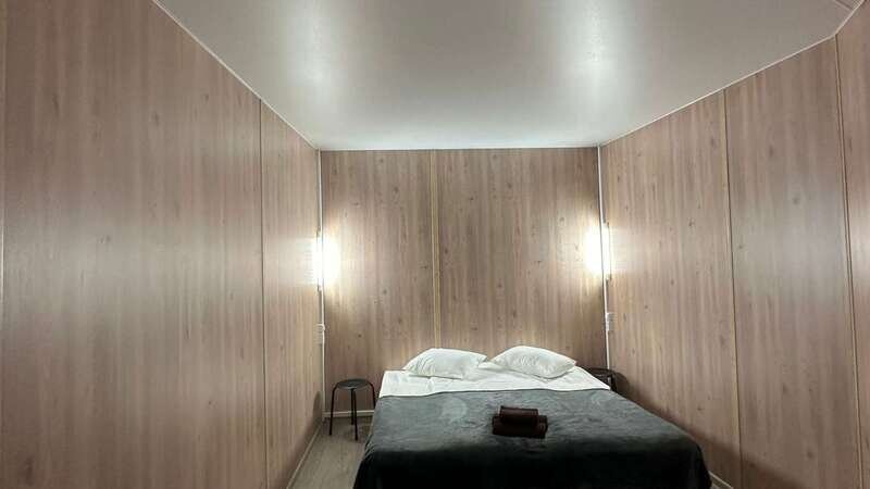 Небольшая спальная комната, двуспальная кровать или две односпальные кровати, телевизор, душ.