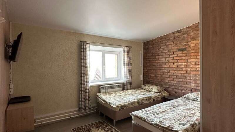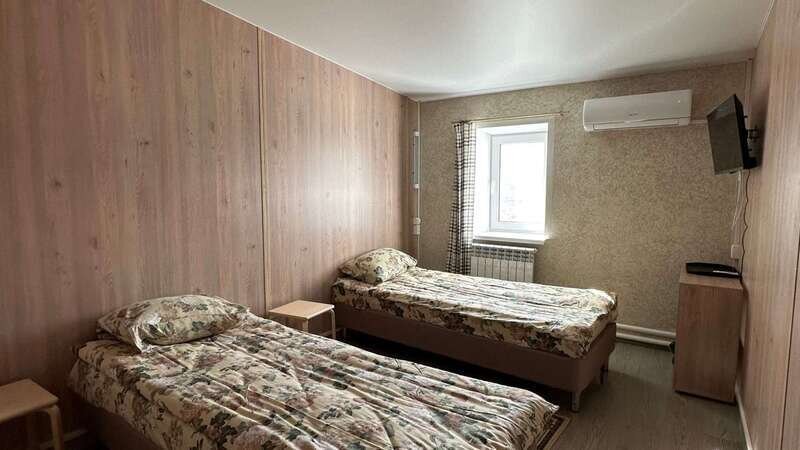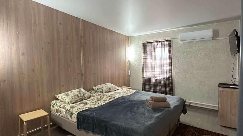 Небольшая спальная комната, двуспальная кровать или две односпальные кровати, телевизор, кондиционер, душ.
