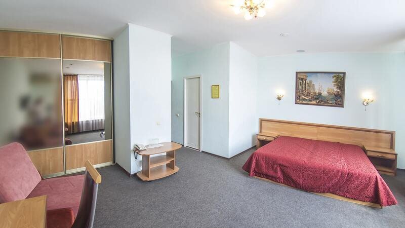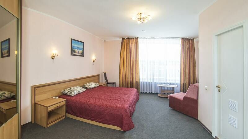 Стандартная спальная комната, двуспальная кровать (две односпальные кровати), двуспальный диван (односпальное кресло), телевизор, кондиционер, холодильник, душ.