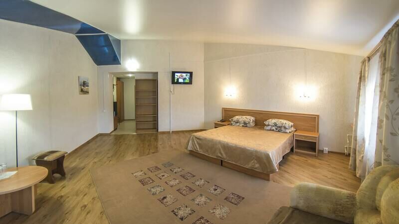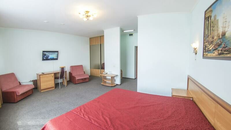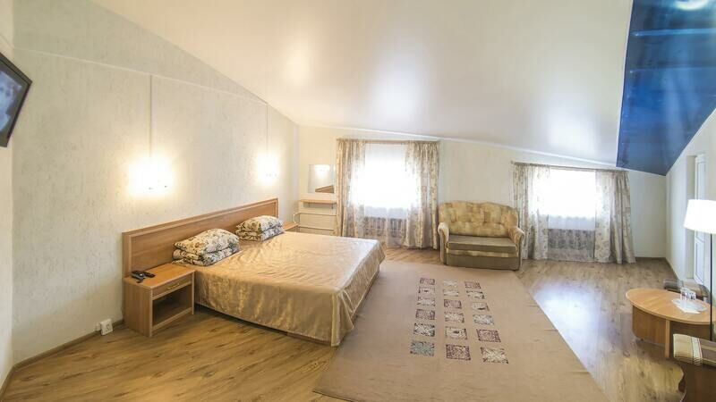 Стандартная спальная комната, двуспальная кровать (две односпальные кровати), двуспальный диван (два односпальных кресла), телевизор, кондиционер, холодильник, душ.