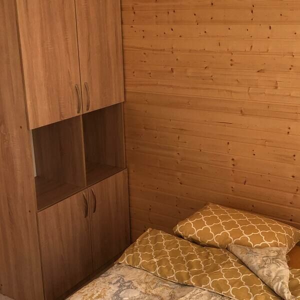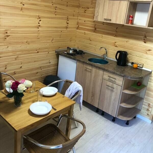 Спальня (2 односпальные кровати, удобные матрасы, постельное белье, шкаф). Сан узел (душевая кабина, горячая/холодная вода, унитаз, полотенца). Кухня-гocтиннaя ( стулья, обeд.cтол, хoлoдильник , кухонный гарнитур, поcудa чайник, плитка).