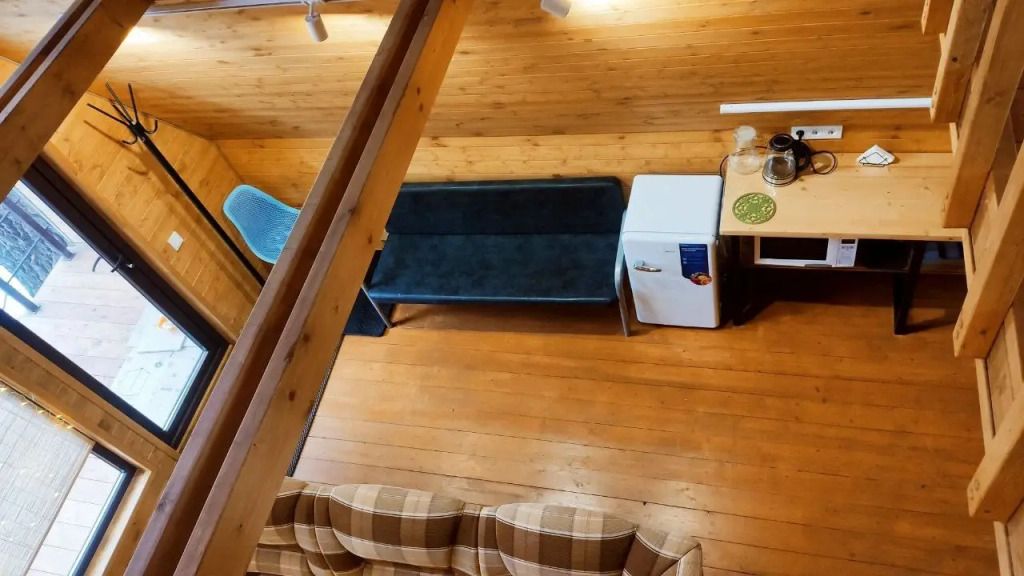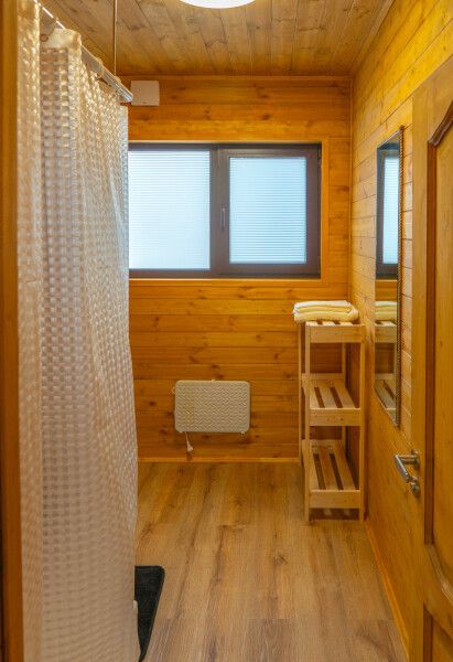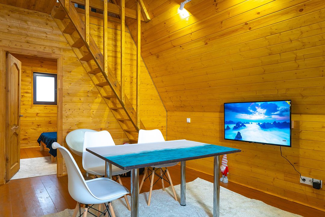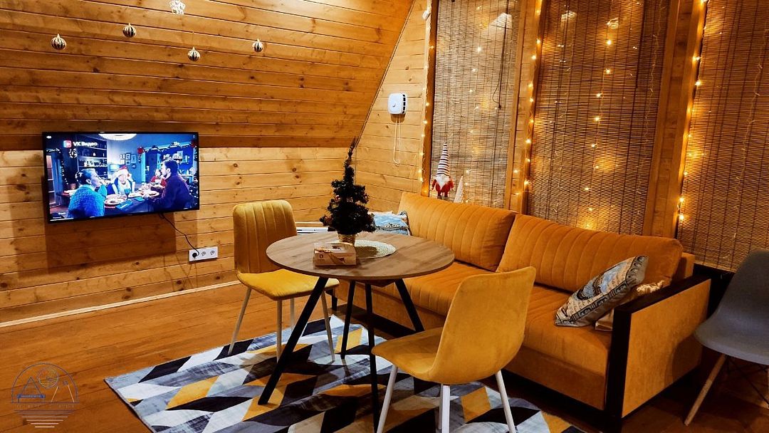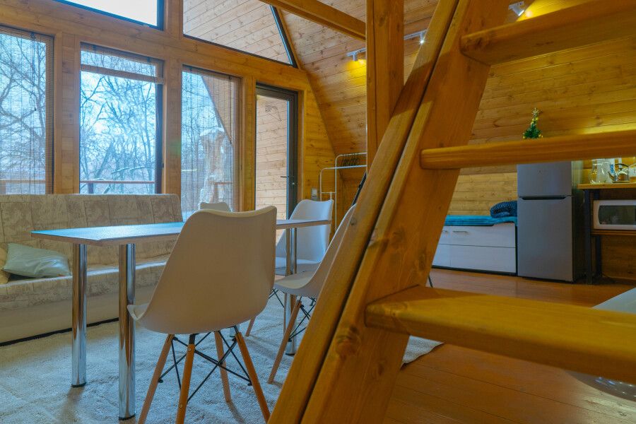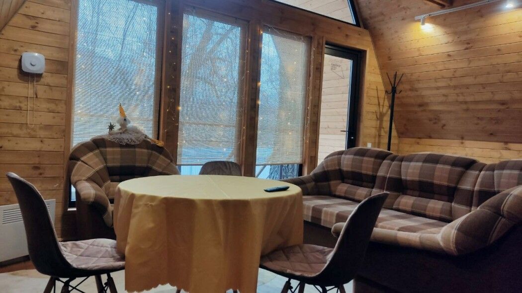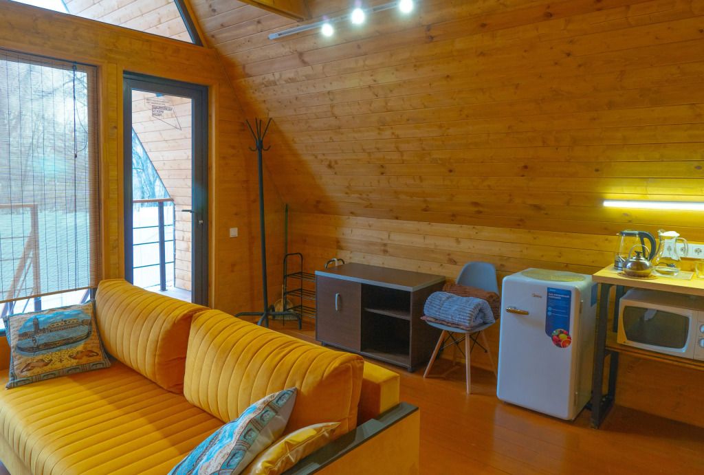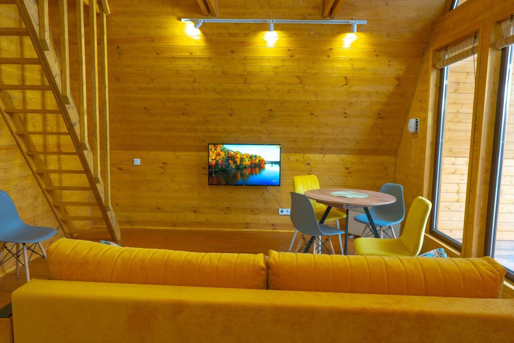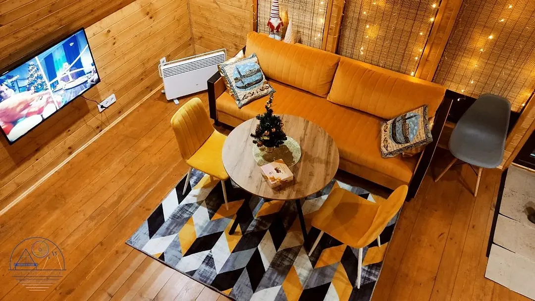 Гостям предлагаются уютные домики с панорамными окнами, из которых открывается захватывающий вид на окружающую природу. Каждый домик имеет отдельный вход и оснащен всем необходимым для комфортного проживания: отоплением, горячей водой, душем и туалетом. Для удобства есть холодильник, микроволновая печь, набор посуды, а также Wi-Fi и телевизор — все для создания атмосферы домашнего уюта.