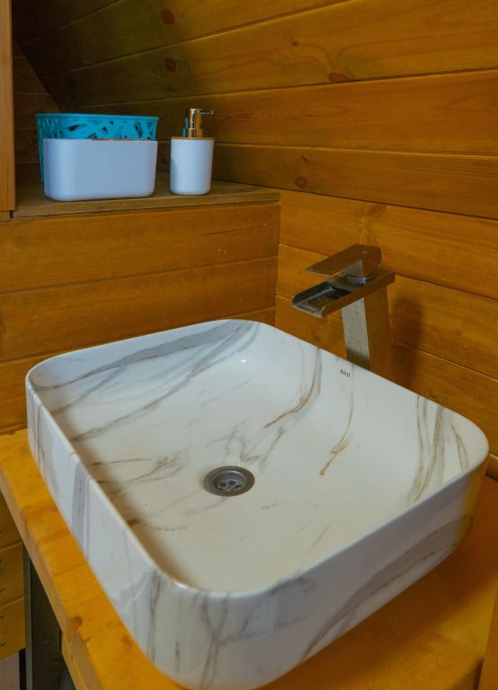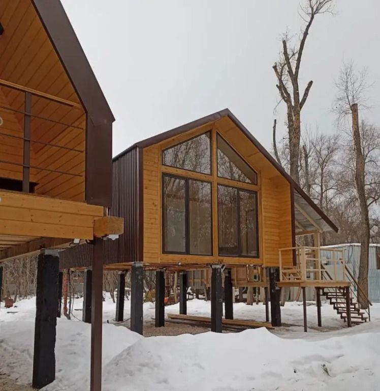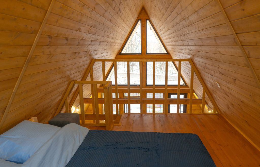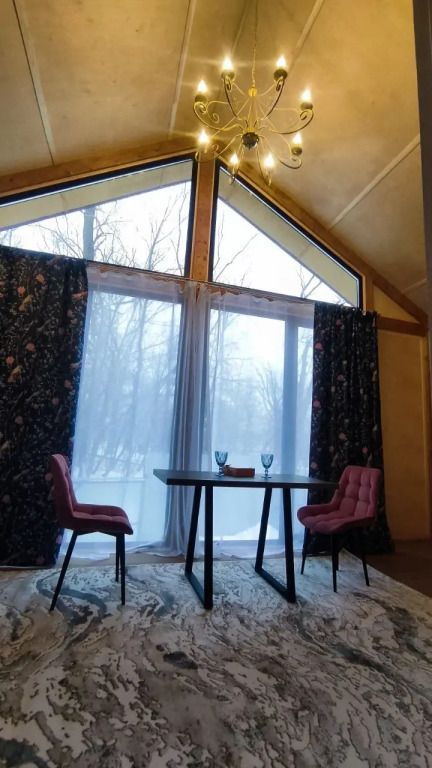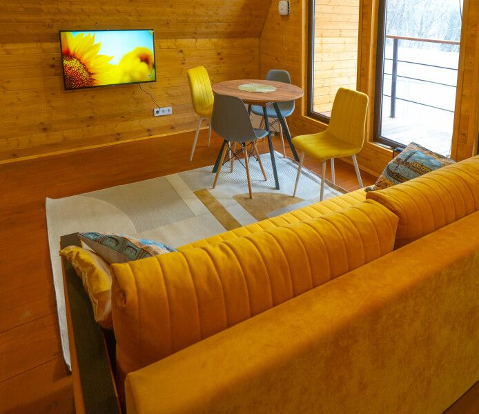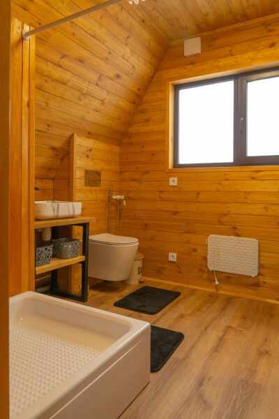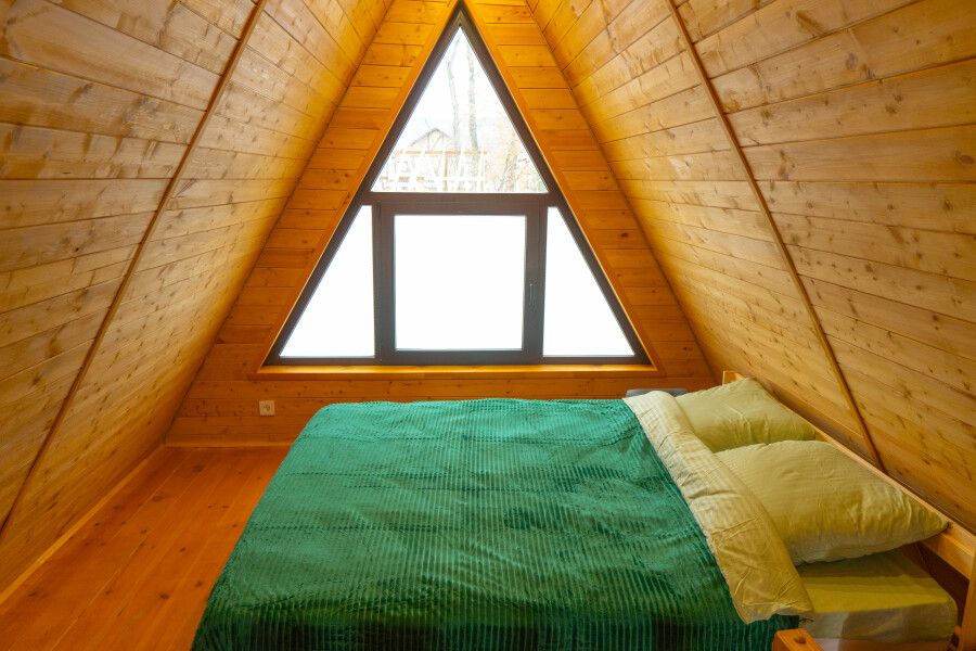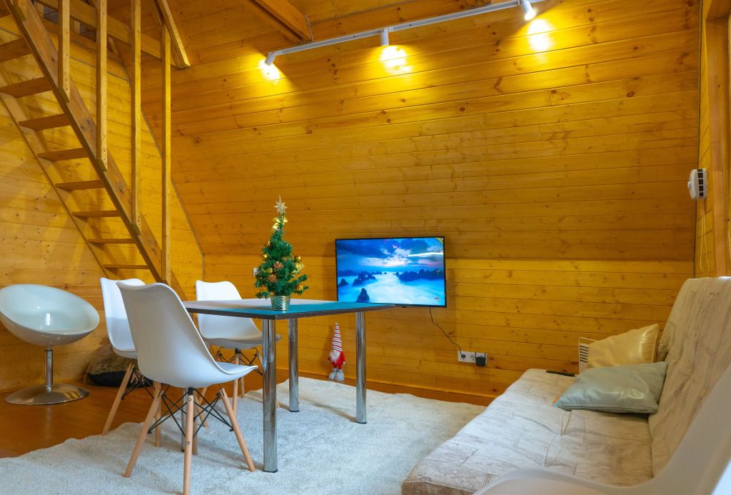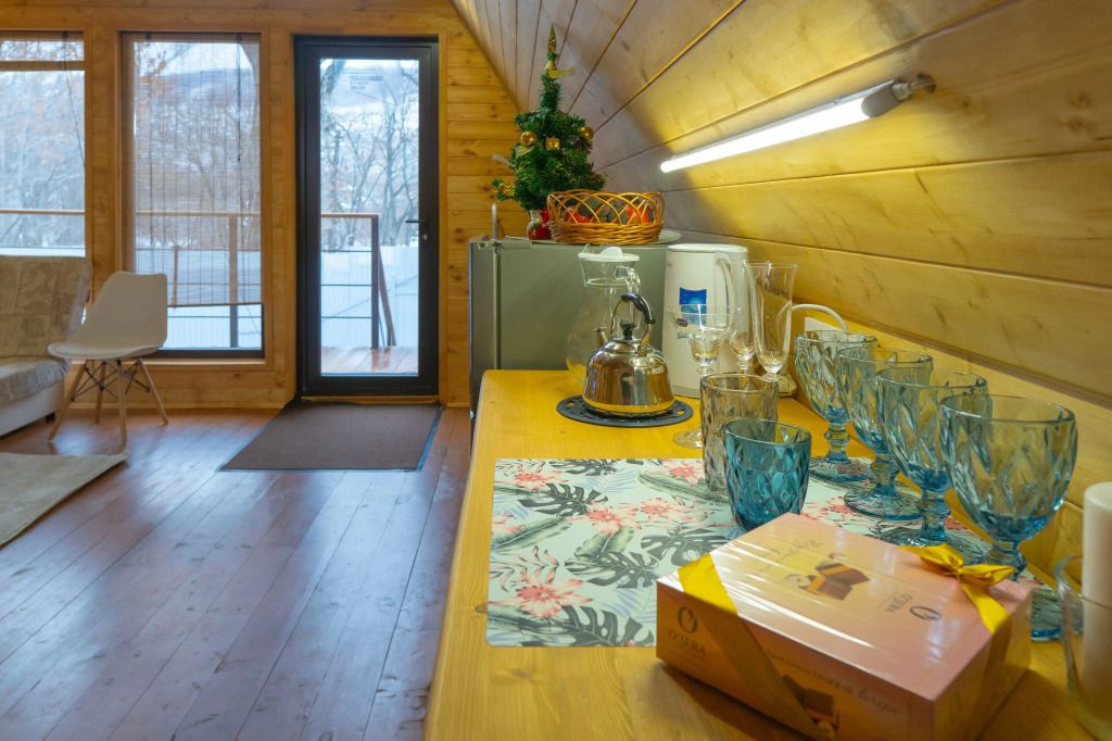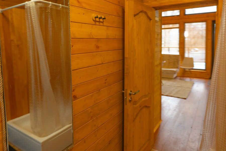 Гостям предлагаются уютные домики с панорамными окнами, из которых открывается захватывающий вид на окружающую природу. Каждый домик имеет отдельный вход и оснащен всем необходимым для комфортного проживания: отоплением, горячей водой, душем и туалетом. Для удобства есть холодильник, микроволновая печь, набор посуды, а также Wi-Fi и телевизор — все для создания атмосферы домашнего уюта.