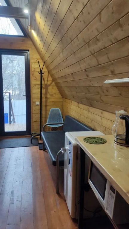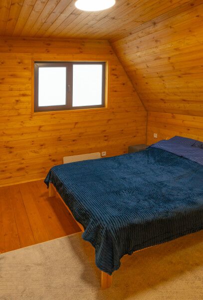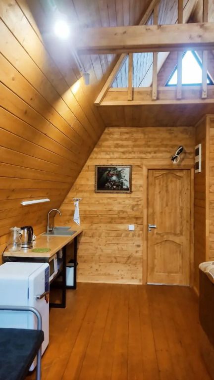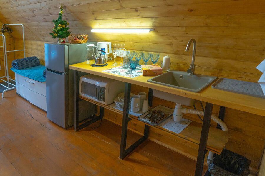 Дом выполнен из экологичных материалов. Комфортное размещение двух человек. При заезде с ребенком возможно предоставление односпальной раскладной кровати.