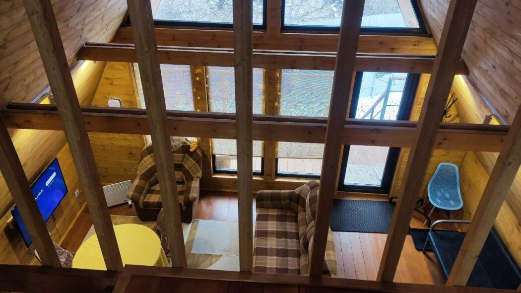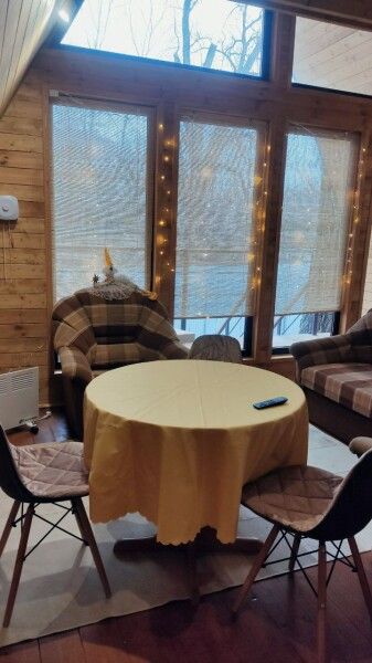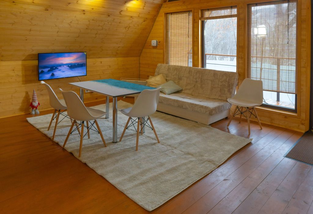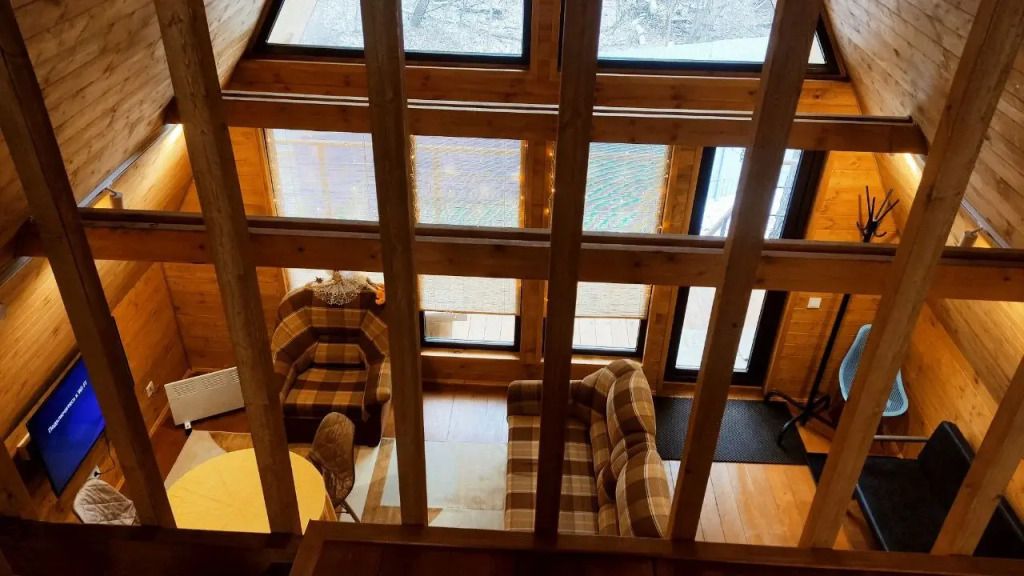 Новый, современный, уютный двухэтажный дом с террасой в стиле A-frame с панорамными окнами и видом на реку и Сокольи горы. Просторный и комфортный дом с двумя отдельными спальнями, кухней-гостиной и ванной комнатой. Комфортно разместятся до шести человек.