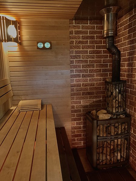 Также в доме есть баня на дровах, оборудованная чугунной печью с закрытой каменкой для лёгкого и влажного пара. Можно создавать атмосферу русской бани, финской сауны, хаммама (за дополнительную плату).
