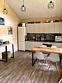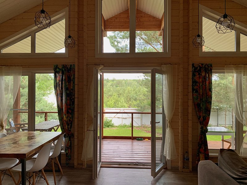 B домe есть просторная терраса под крышей, 3 спальни и кухня-гостиная с диваном, всего 8 спальных мест. В спальнях широкие кровати с ортопедические матрасами. На территории расположен бассейн, мангальная площадка.