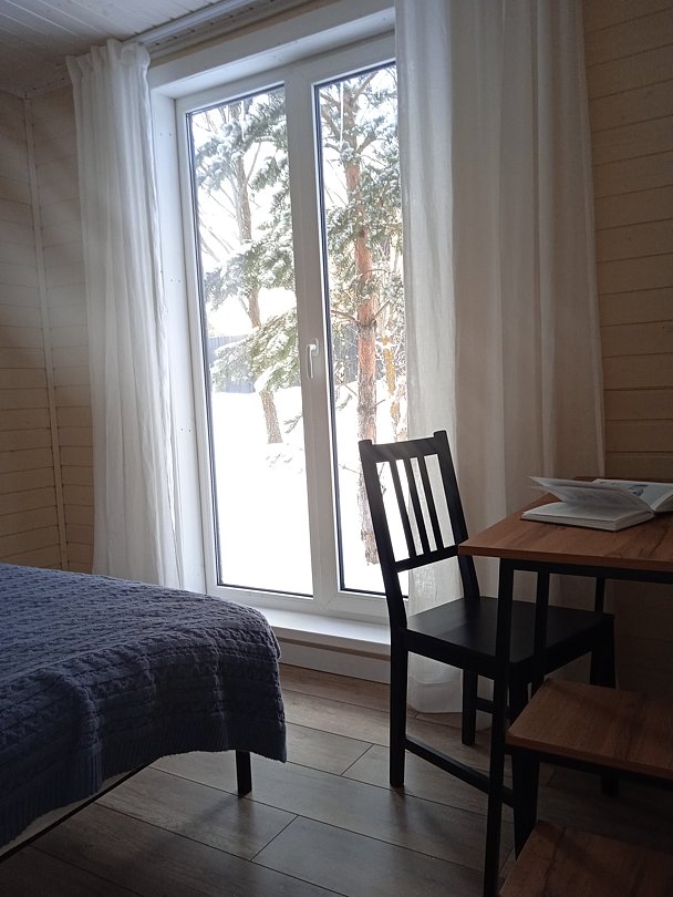 Семейный отдыхДостоинстваБыли не в малом доме, а в большом( и следовательно все относится к нему)! Очень уютно и чисто. Вся необходимая посуда на кухне есть даже с избытком(дом на 4-х а стаканов и рюмок на 6 человек). Прекрасные виды (куда не сядешь или ложишься взгляд утыкается в окно с красивым видом)! Хорошая мангальная зона(при том что и требует небольшого дооснащения(столик, стулья))! Отличная небольшая банька топится на раз(не переборщите с температурой)! Только положительные впечатления даже при наличие небольших огрехов(но видно что хозяева стараются)! Заслуживает звания: ДОМ С ДУШОЙ!!!