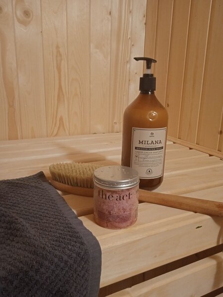 С собой нужно взять полотенца для душа/бани и тапочки.