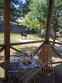 На территории: мангал-олень, несколько сосен, гамак, парковочное место.
