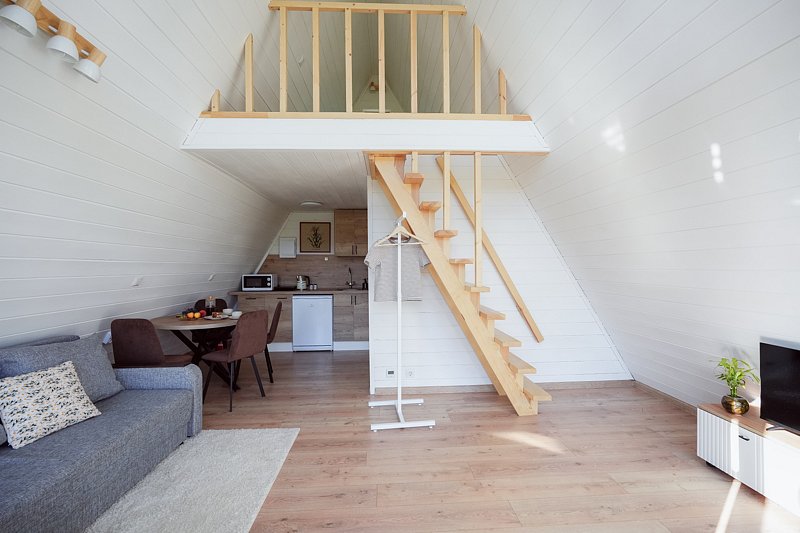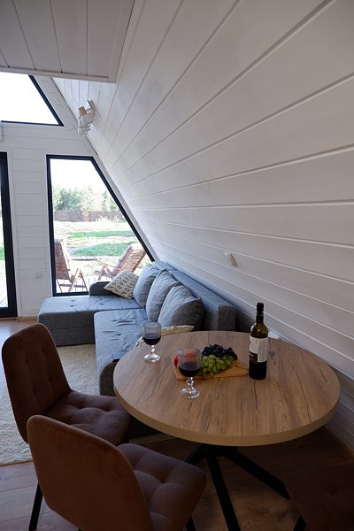 В домике есть все необходимое для комфортного проживания и отдыха, дoм идeaлeн для проживания 2-4 челoвек: кондиционер, теплые полы, раскладной диван, анатомический матрас на втором этаже, wi-fi, телевизор с Smаrt ТV и онлайн сервисами для просмотра Ваших любимых фильмов, настольные игры, пергола с мангальной зоной (угли, розжиг, шампуры и решетки предоставляются), бадминтон.