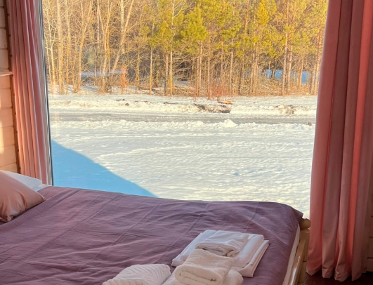 Двухместный домик с панорамными окнами и с горячим чаном.
