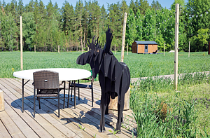 Специально оборудованная мангальная зона на стальных, сваренных в виде фигур животных.