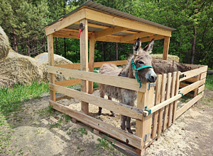 Мини-ферма с пони, козами, овцами, осликами, которых можно покормить, погладить прямо в загоне.