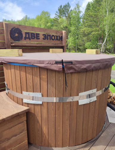 Читать полностьюГорячий банный чан под открытым небом. Парение в банном чане на улице комфортно и приятно в любую погоду. В чане горячая вода с добавками (по желанию), внутри удобные сиденья, снаружи — лестница для удобства погружения и выхода из чана.