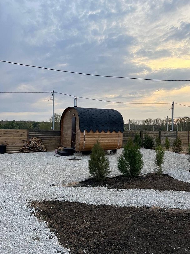 На территории есть небольшая дровяная баня. Вместимость комфортная — 4 человека.