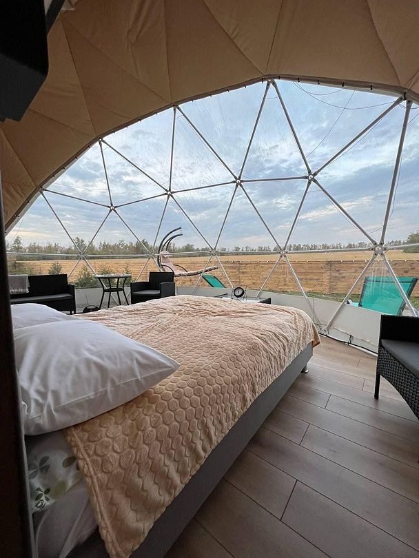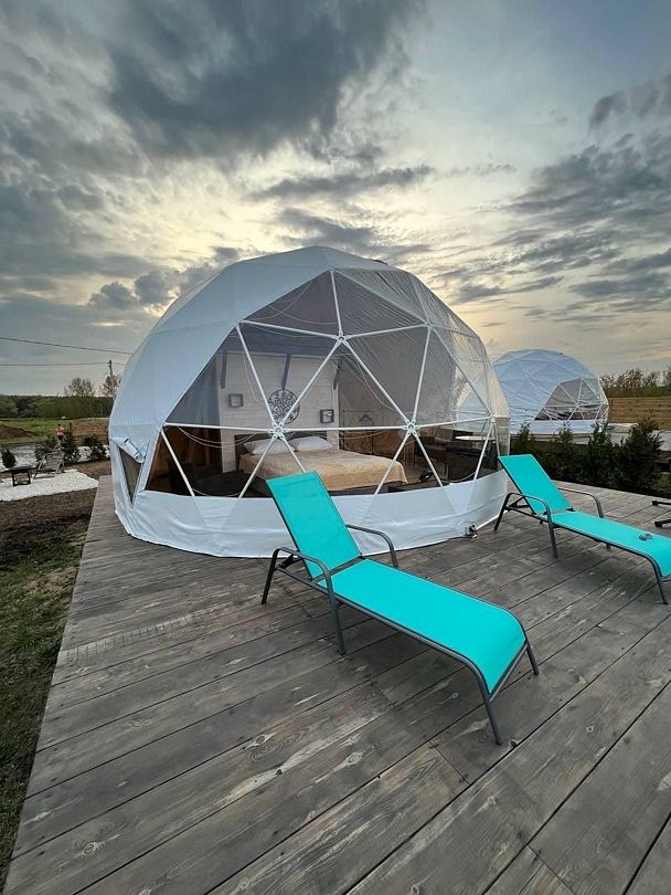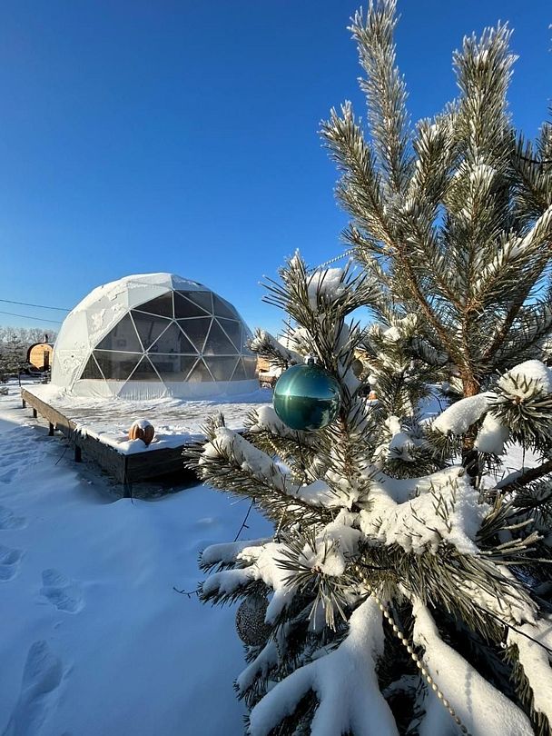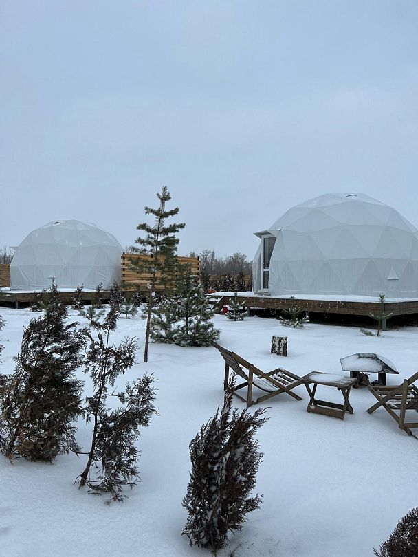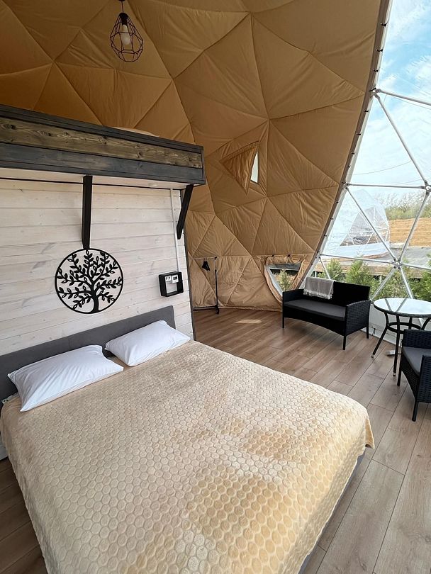 Купол очень теплый, душ и туалет в куполе, есть кондиционер.