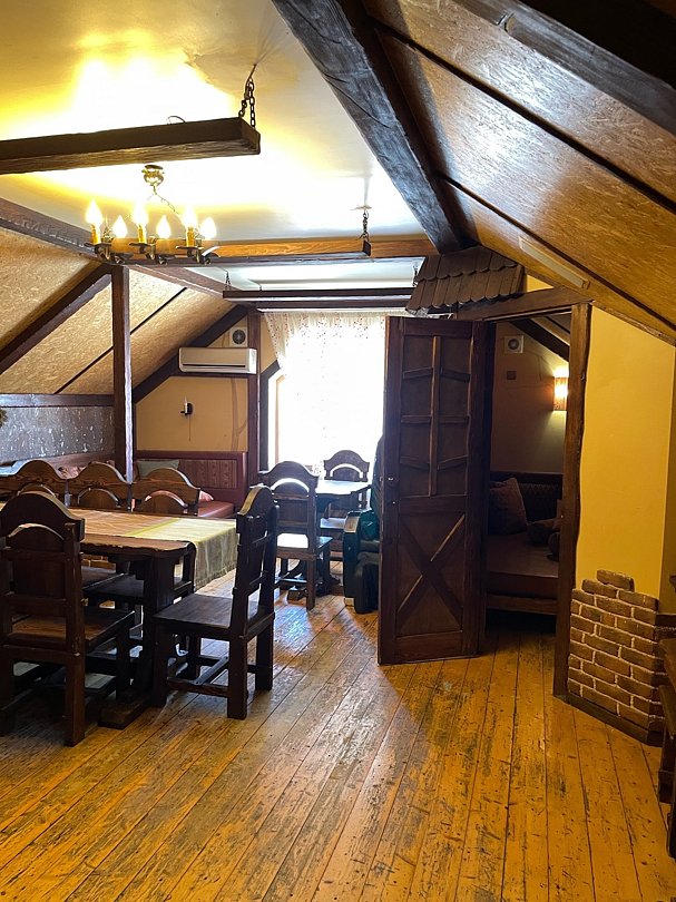 На верхнем этаже находятся 4 гостиничных номера, оснащенные: кондиционером, телевизором и всем необходимым для комфортного времяпровождения.