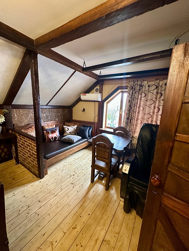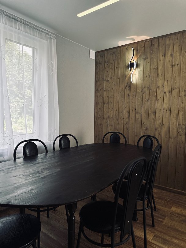 На втором этаже расположена общая комната с большим столом на 10 персон, в которой вам будет тепло и уютно.