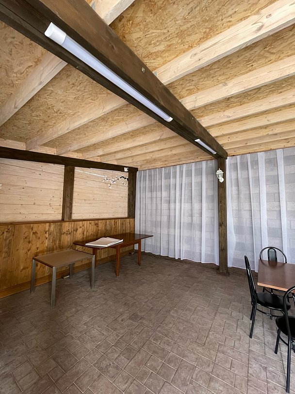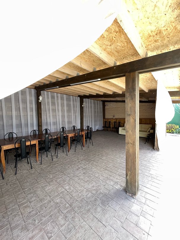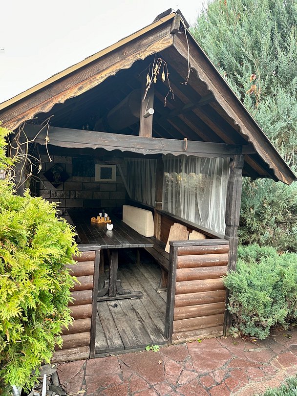 Большая деревянная беседка на 60 человек, а также профессиональная мангальная зона. Беседка предназначена для проведения банкетов, свадьбы или выпускного вечера.