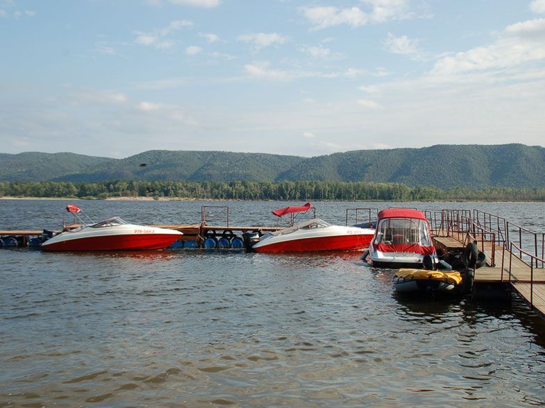 Огороженный, насыпной пляж-веранда. Купальный понтон. Летнее кафе на берегу Волги с прохладительными напитками и мороженным. Прокат катера.