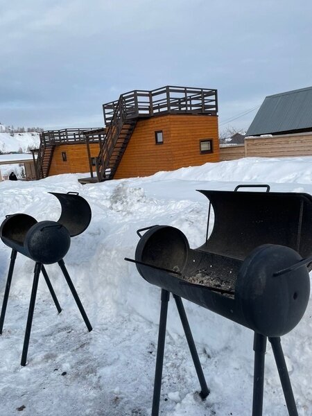 Уютная мангальная зона с четырьмя мангалами, расположенными вдали от домиков. За пользование предусмотрен эко-сбор, а решетку и уголь можно взять с собой или приобрести на месте.