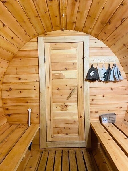 Кедровая баня-бочка на дровах с купелью идеально подходит для отдыха. Внутри гостей окутывает нежный аромат кедра, а в подарок вас ждет чай с медом. Дополнительно можно заказать массаж, ароматерапию или парение, чтобы сделать ваше времяпровождение еще более расслабляющим и восстанавливающим.